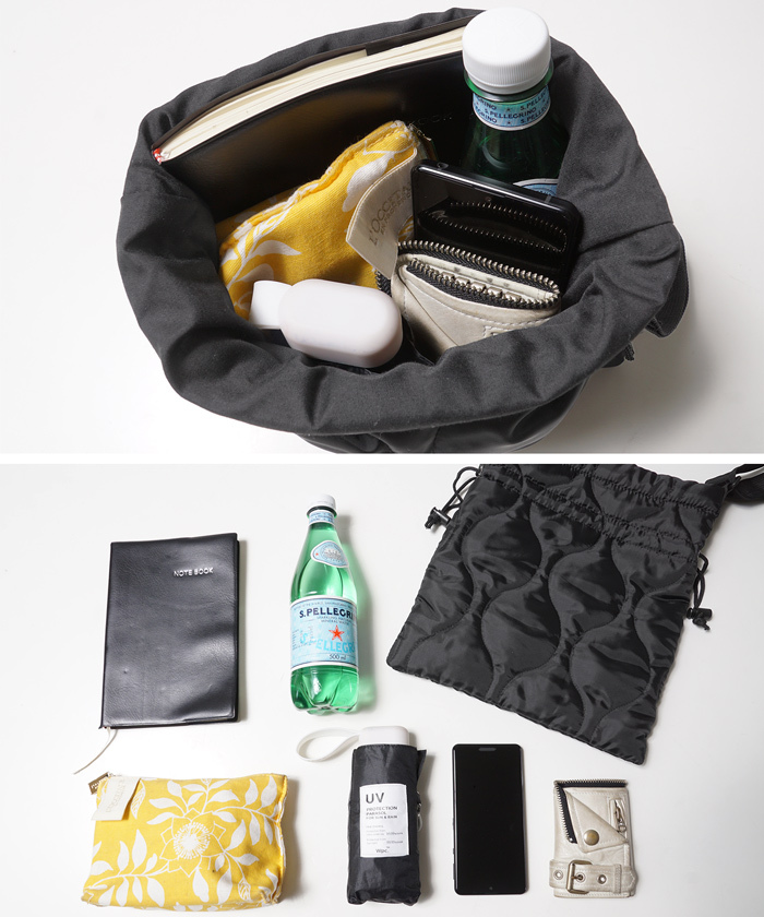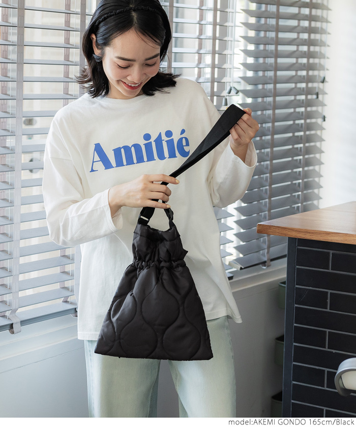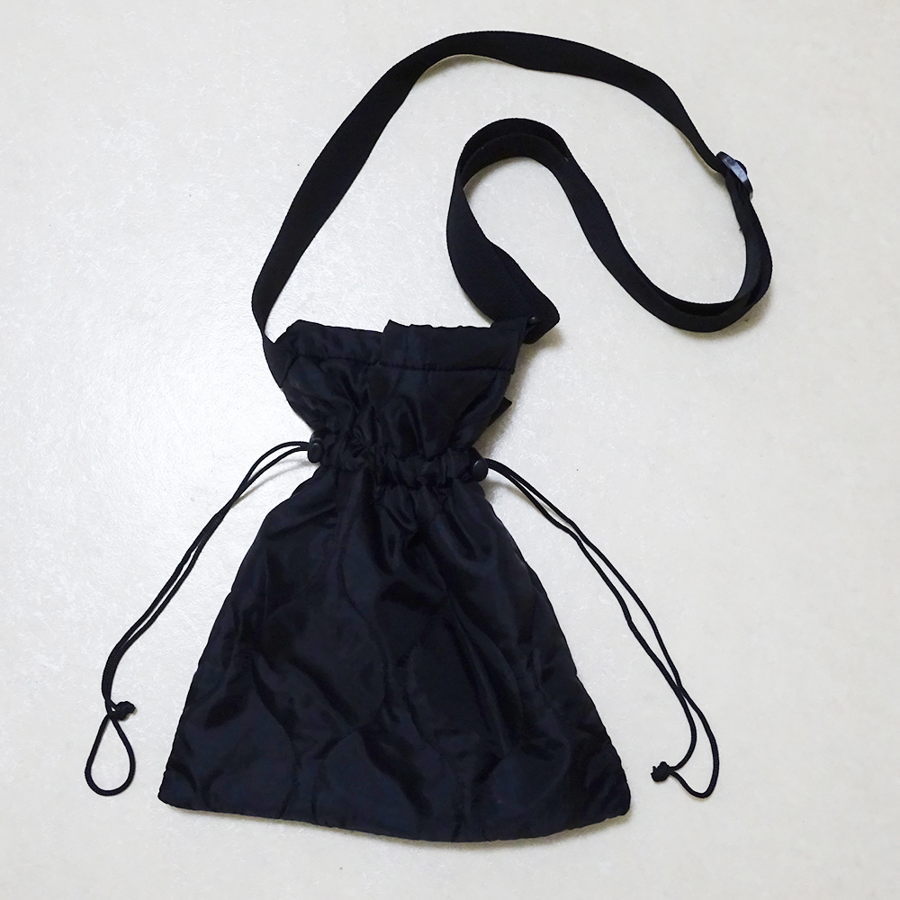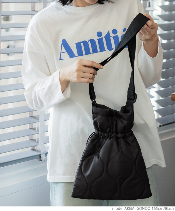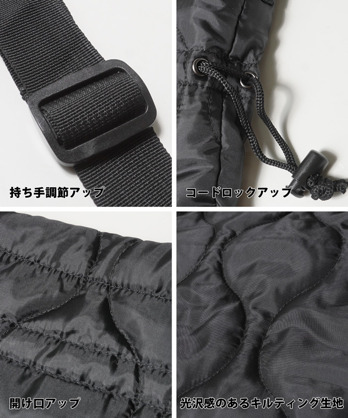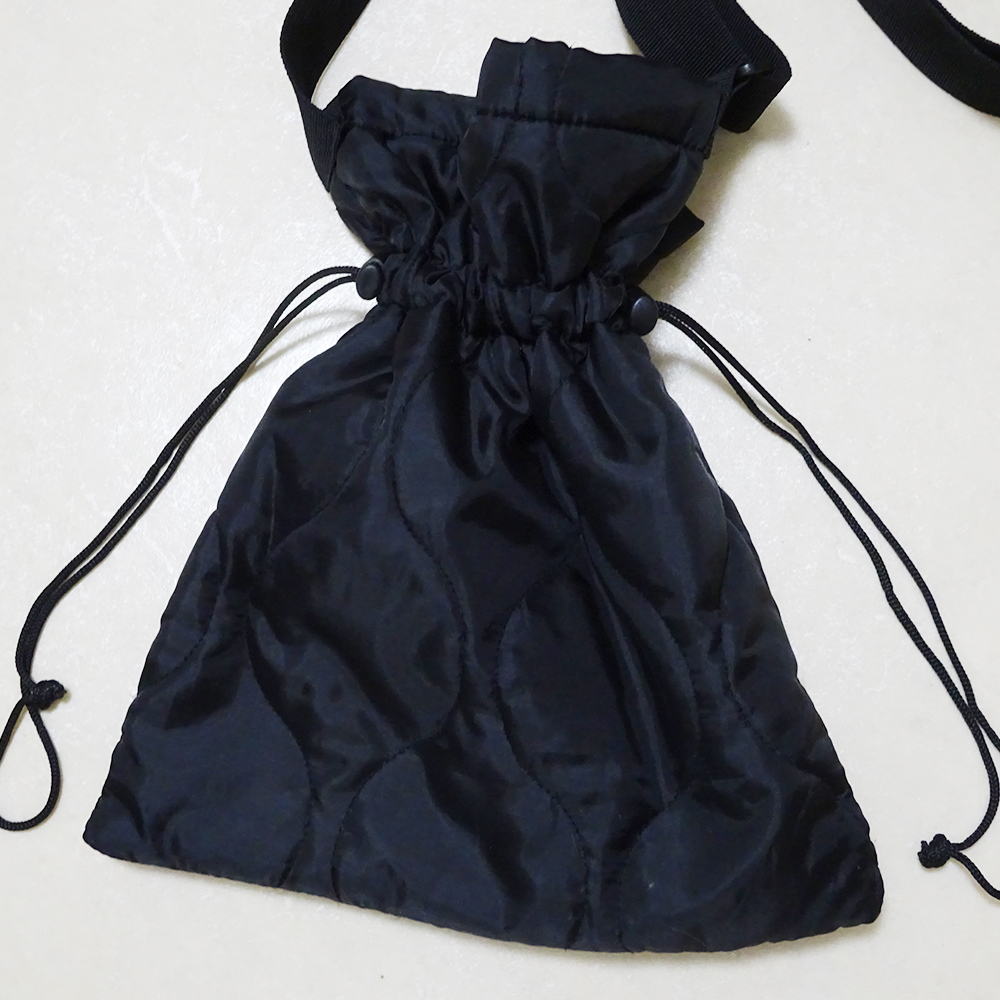 coca コカ 巾着ショルダーバッグ 斜めがけバッグ キルティングデザイン 中綿入り 肩掛けバッグ 軽量 ブラック 黒