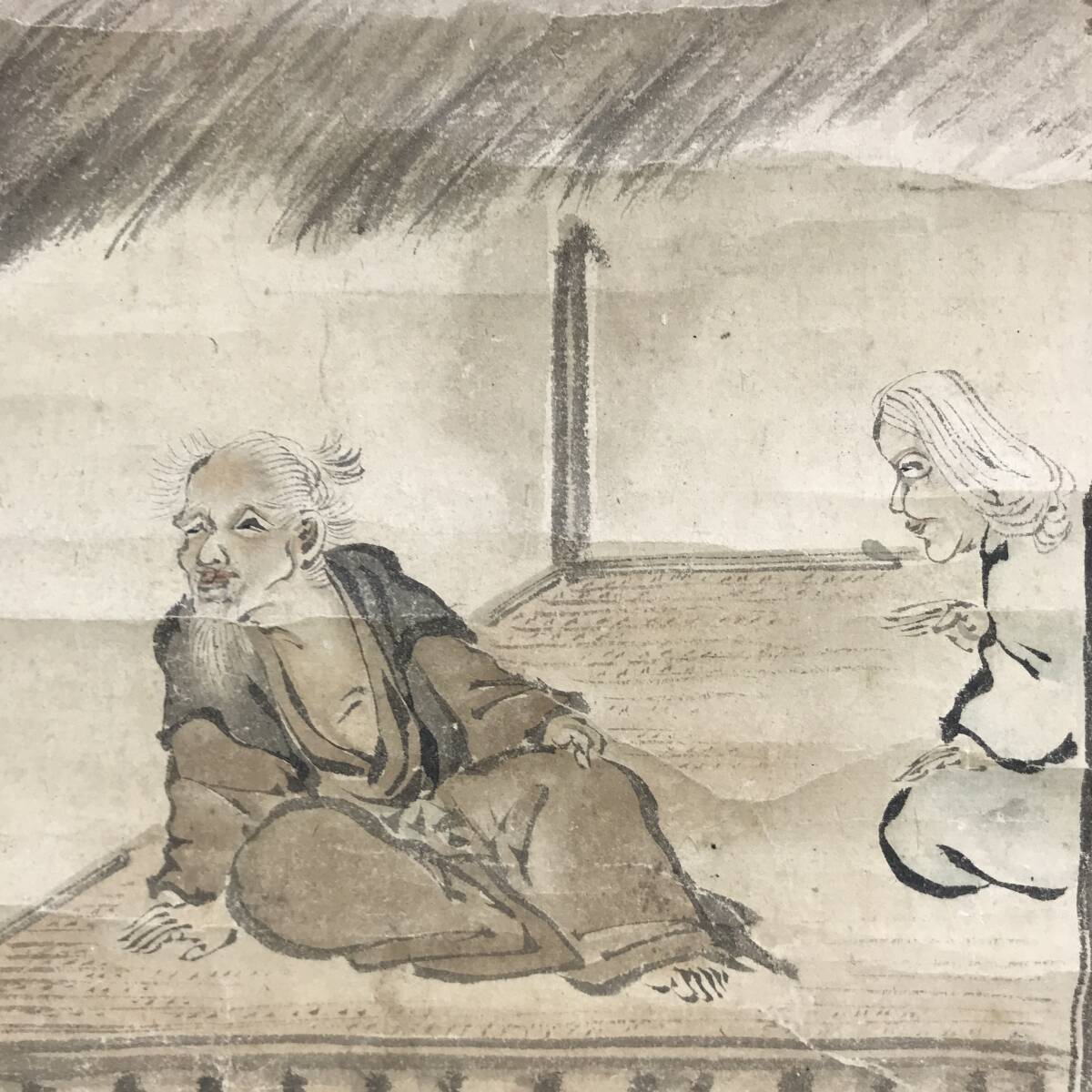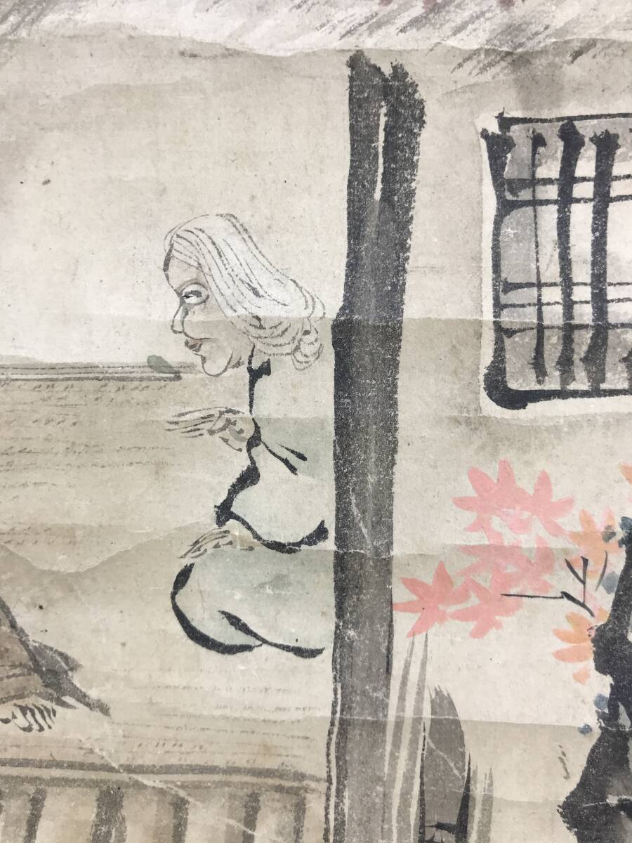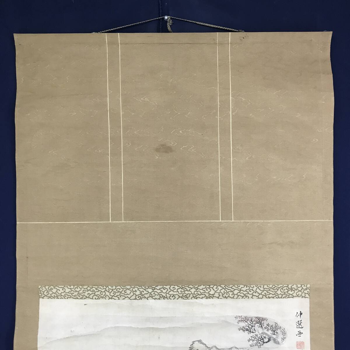 【作品状態】 本紙は紙本です。本紙は時代感あり、薄汚れ、全体に汚れシミ、全体に多数の折れ、シワあります。表装は薄汚れ、多少の汚れシミ、多数の折れ、巻シワあります。