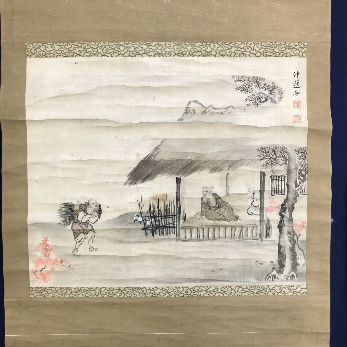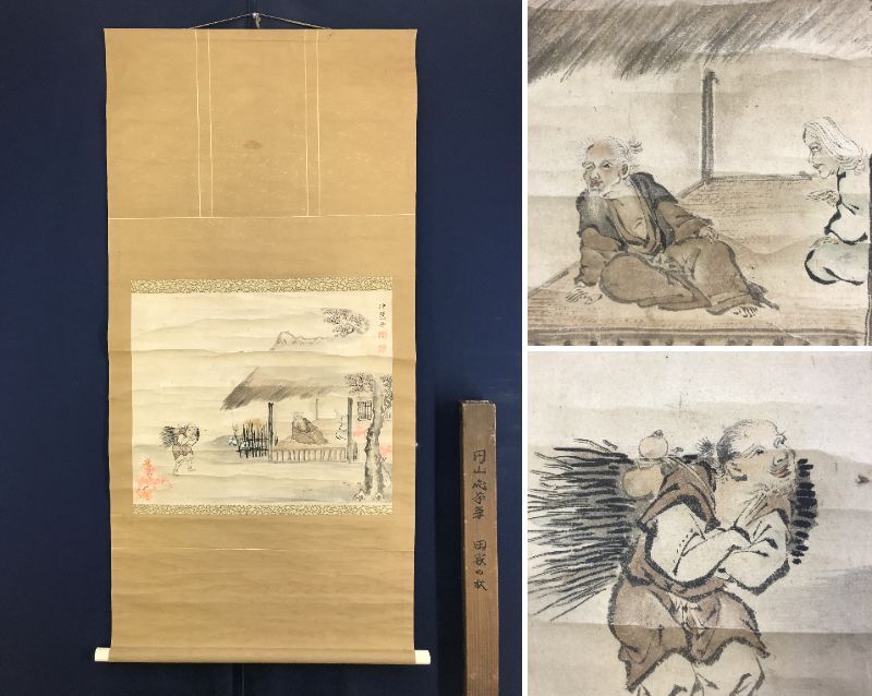 模写/圓山応挙/円山応挙/田家の秋/人物図/山水図/紅葉帰樵図/秋の掛軸/横物/掛軸☆宝船☆AI-931