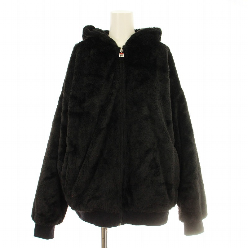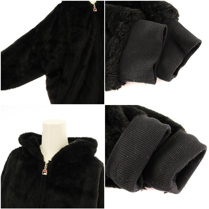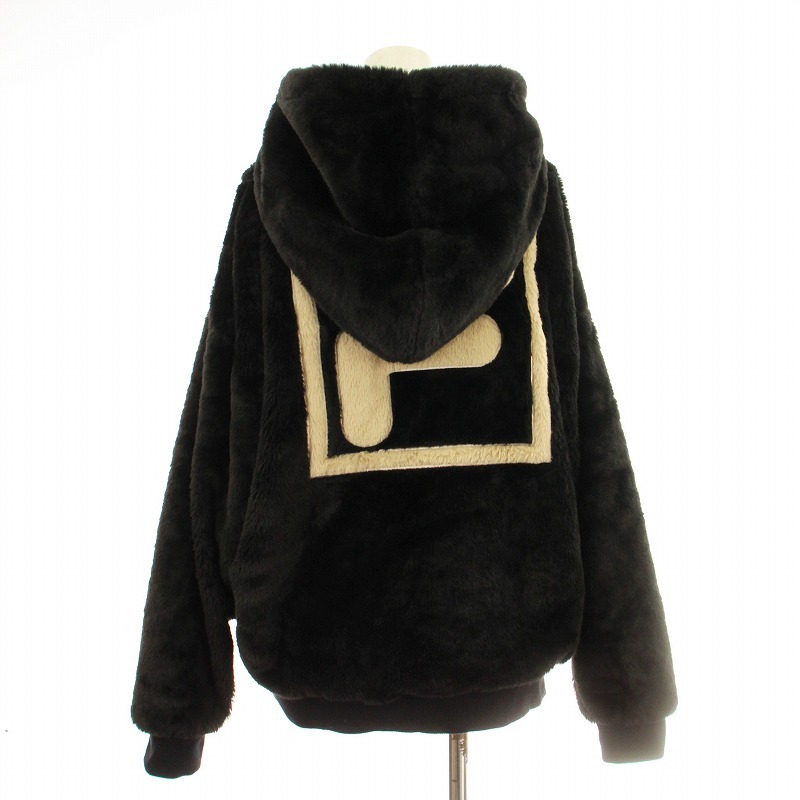 フィラ FILA フェイクファーパーカー FL3638 ジャケット ブルゾン ジップアップ ロゴ M 黒 ブラック /KU■MA レディース