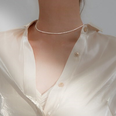 チョーカー 首輪 韓国 S925 スターリングシルバー ネックレス レディース アクセサリーペンダント ビーズ シルバー 銀 長さ 34cm #C882-6