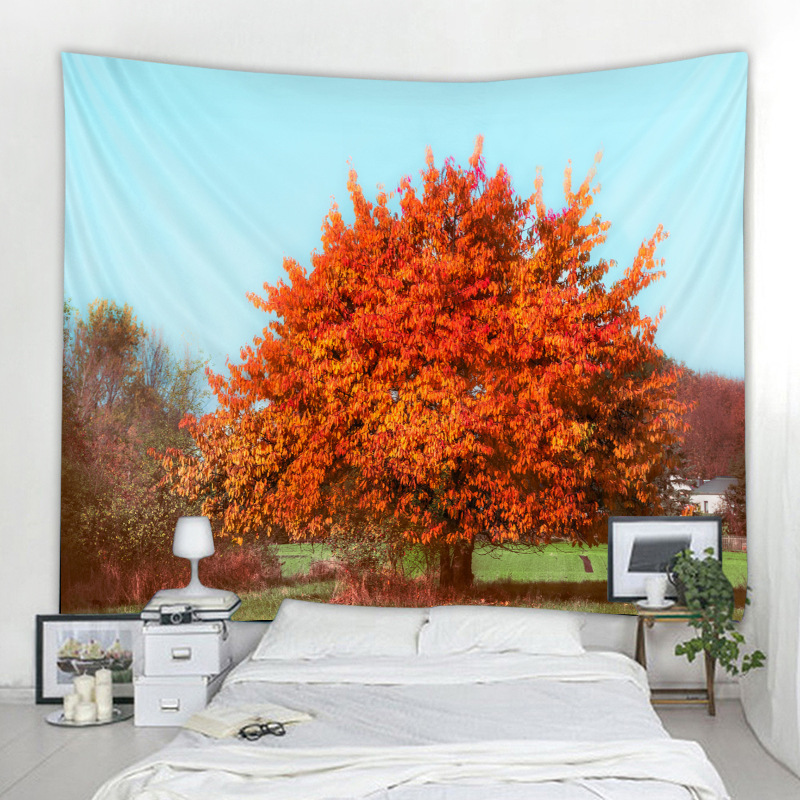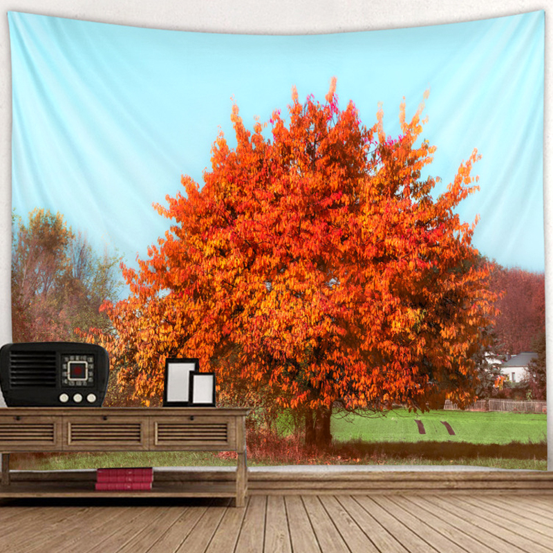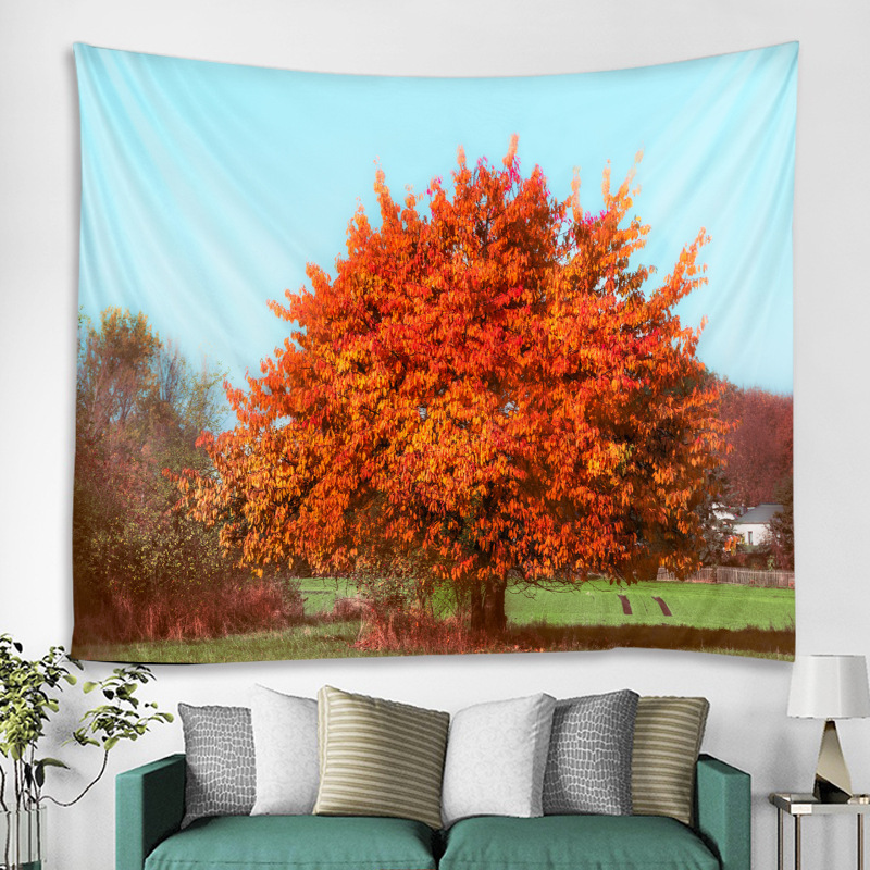 タペストリー 壁飾り 壁掛け装飾布 布ポスター 部屋飾り 背景布 インテリア カーテン 紅葉と大きな樹木の絵柄 150x130cm