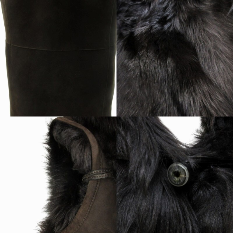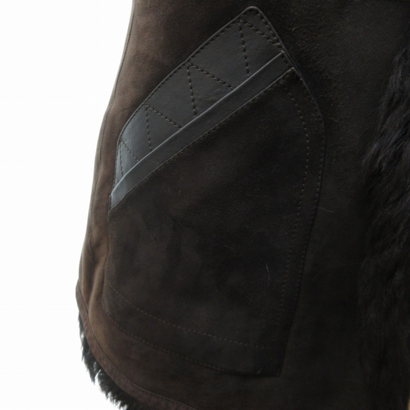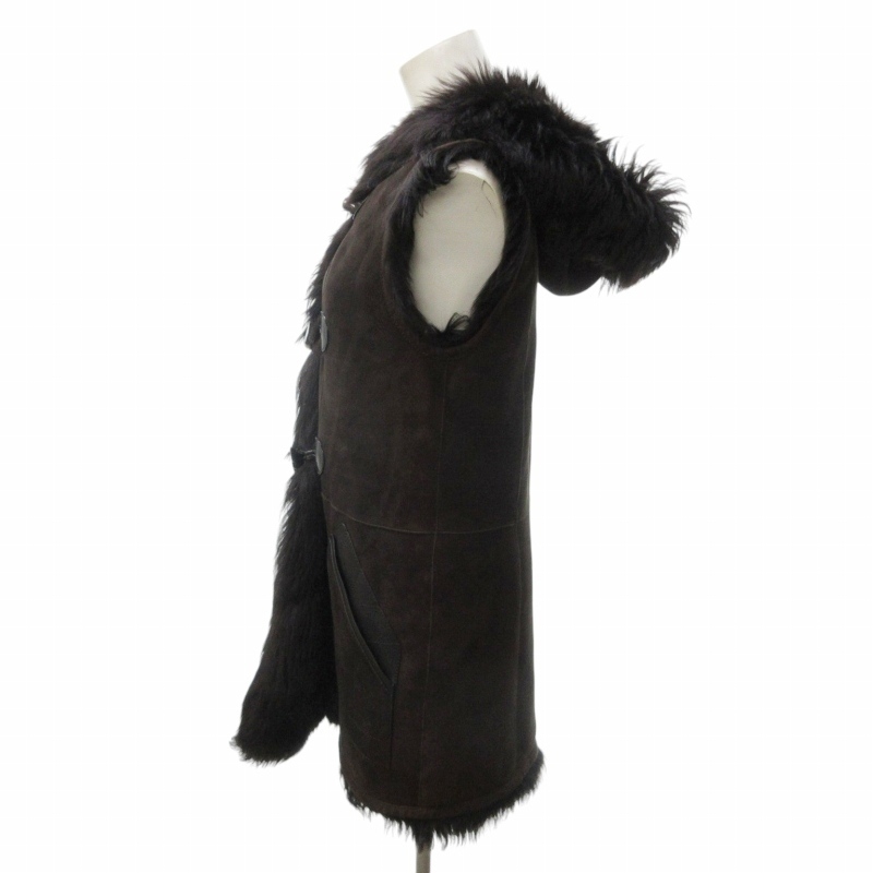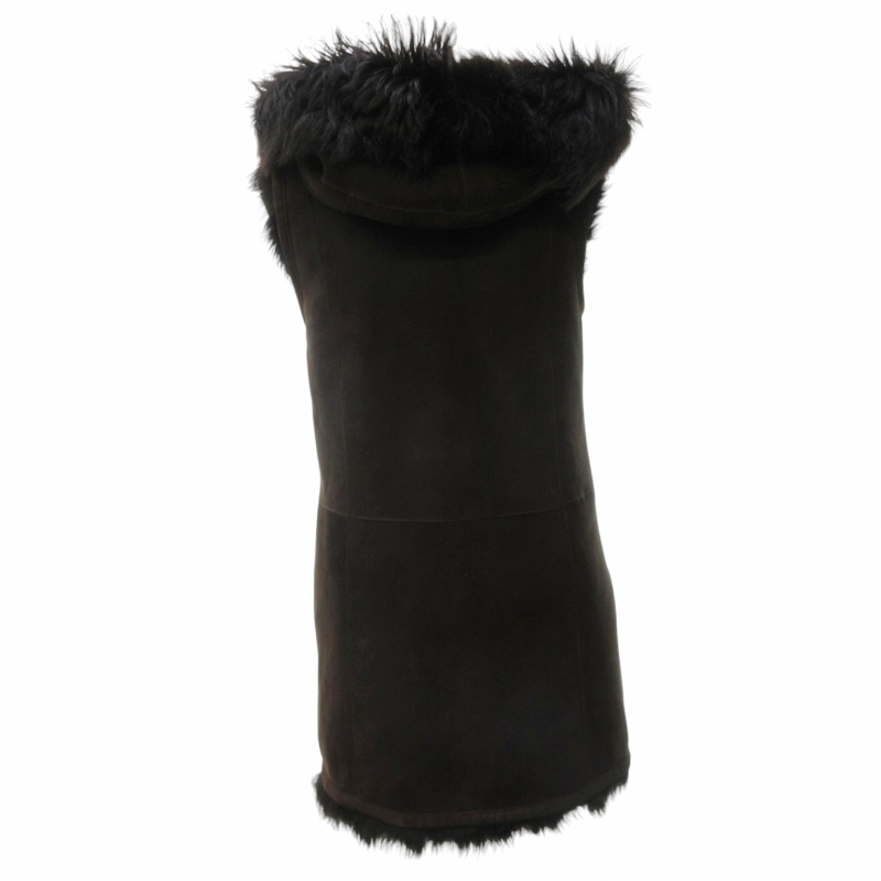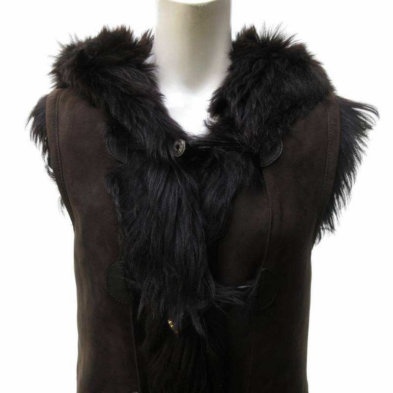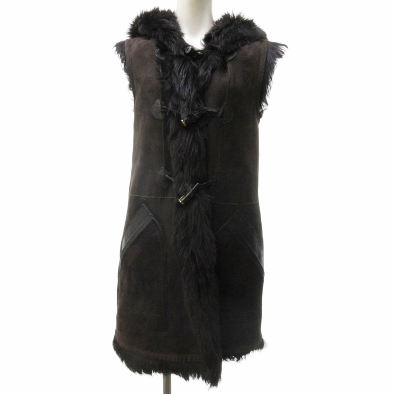 ルイヴィトン LOUIS VUITTON ムートン コート ロングベスト 羊革 トグルボタン 茶 ブラウン 36 155/84A 約S IBO69 レディース