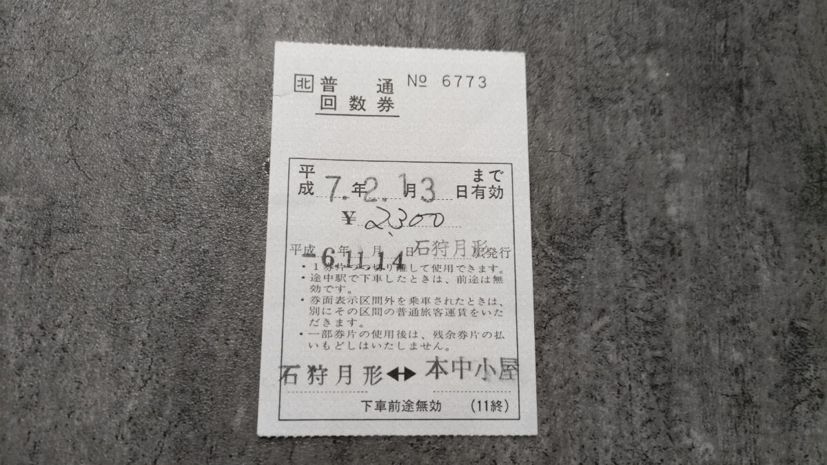 普通回数券「石狩月形⇔本中小屋」の最終券片です。