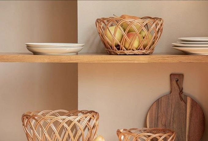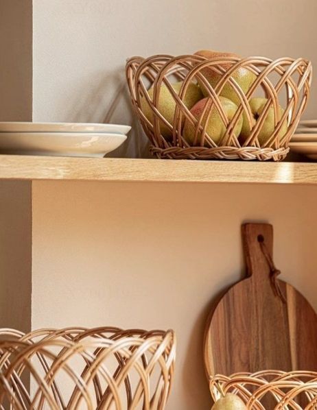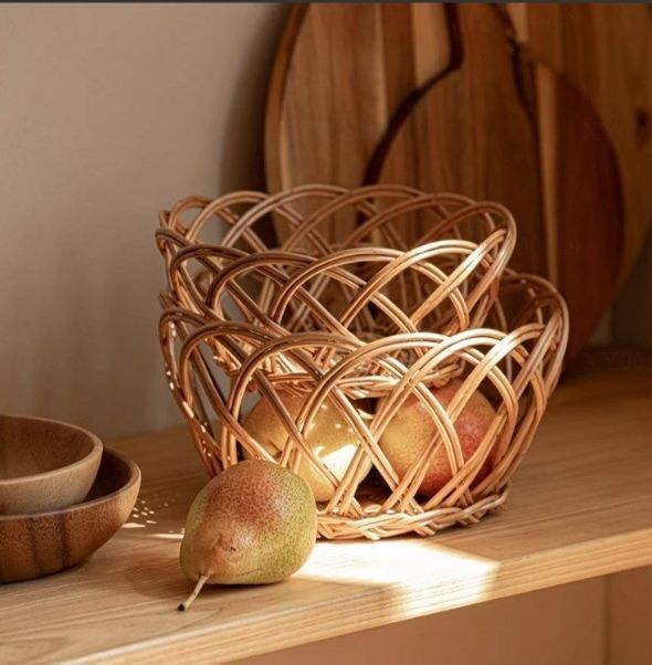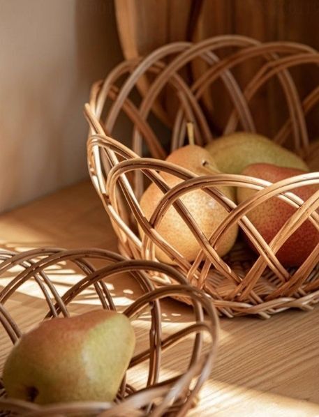 【全新品】 天然素材 アラログ 籐透かし編みバスケッ トみかんかご