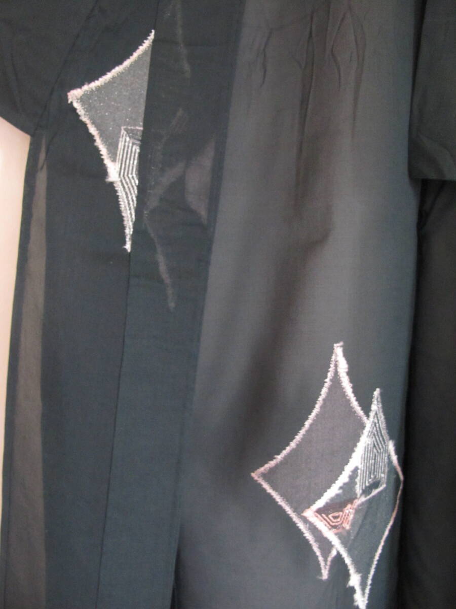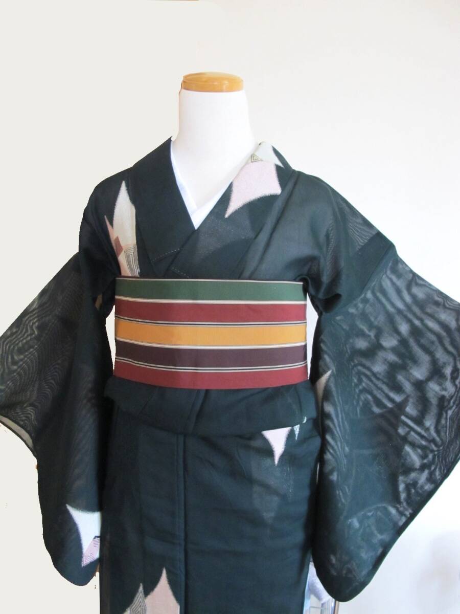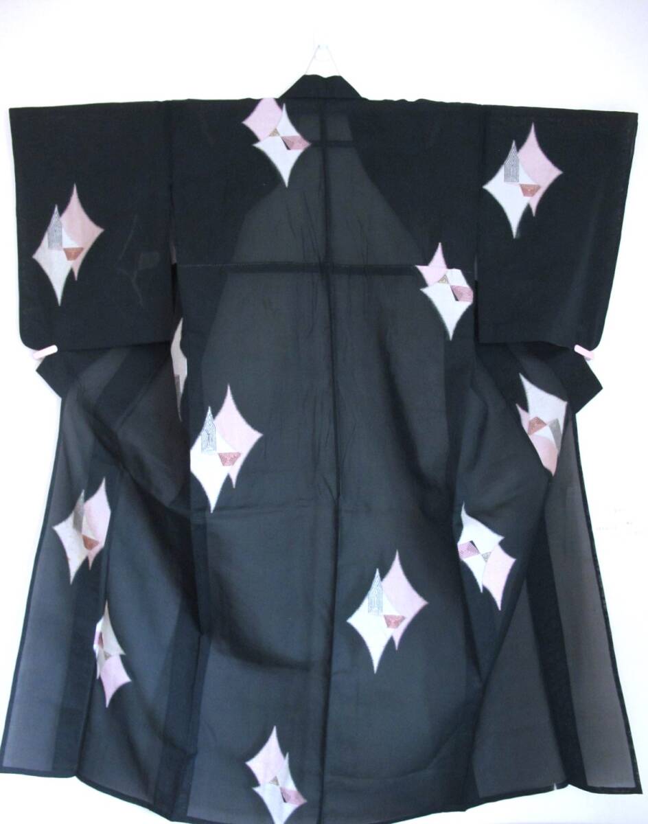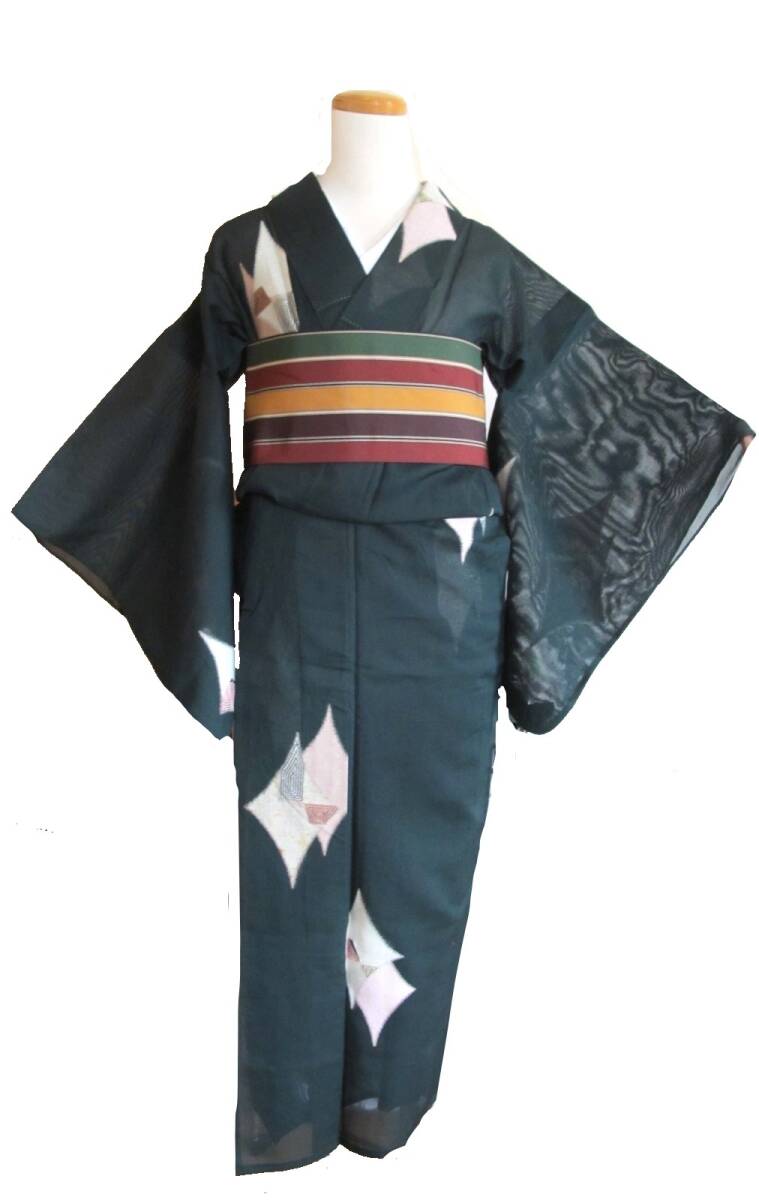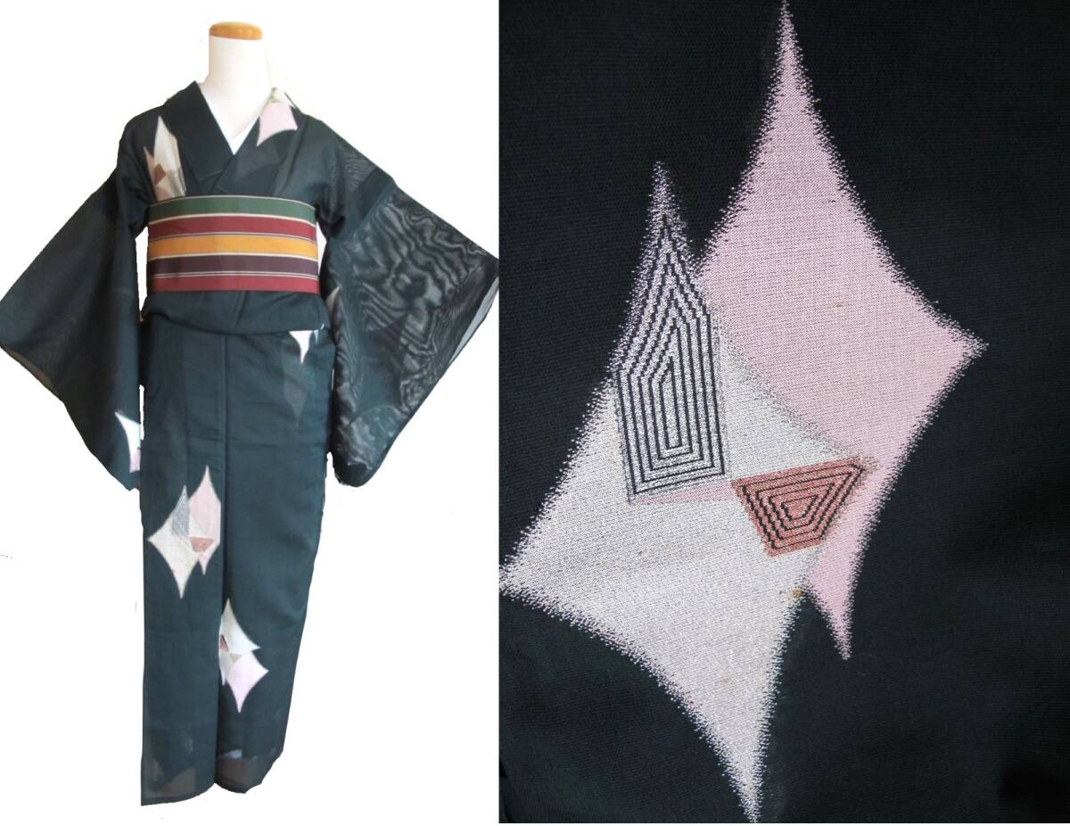 モダンなダイヤ柄のアンティーク夏お召し着物です。 |