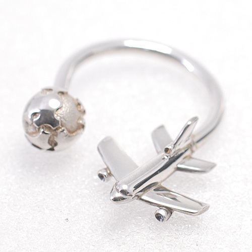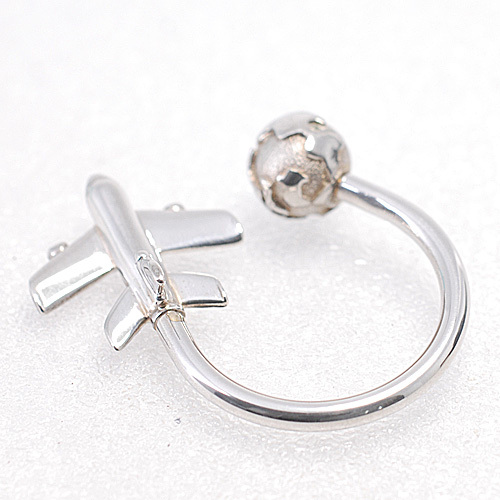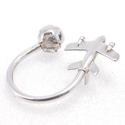飛行機と地球がデザインされた、TIFFANY シルバー925製キーリング。