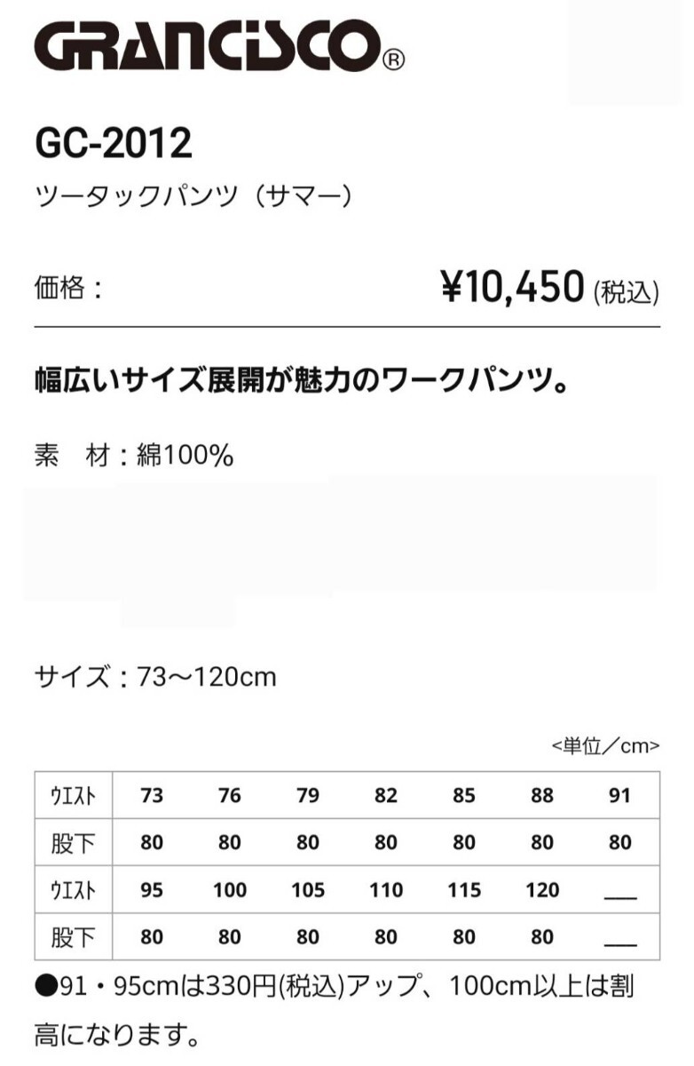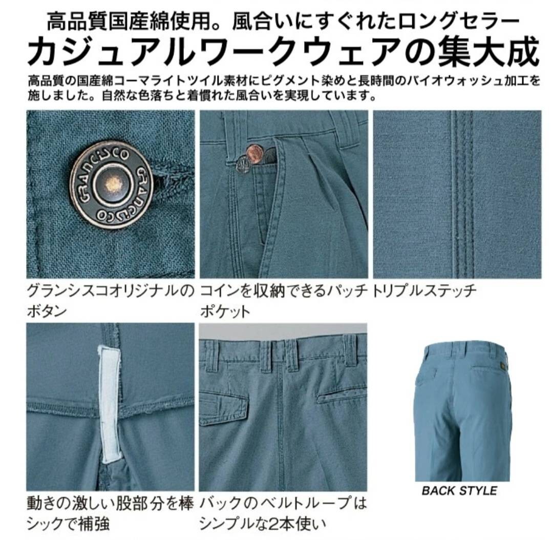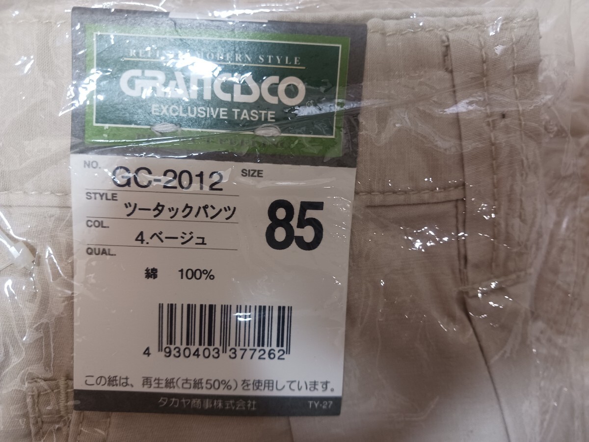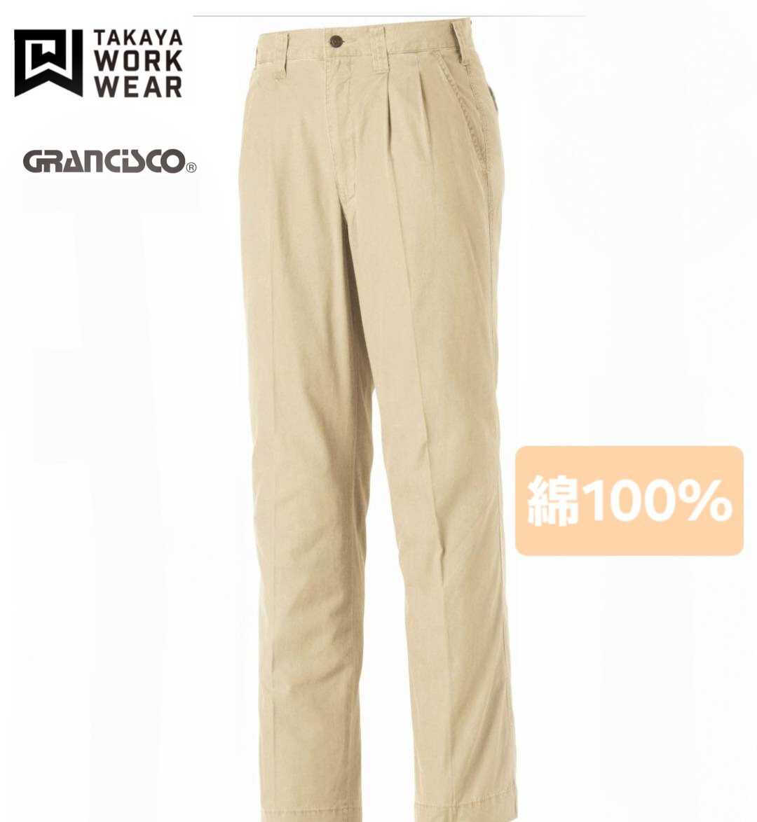 3683 TAKAYA|ツータックパンツ|GC-2012|ベージュ|W85㎝|綿100%|春夏|新品未使用|タカヤ|GRANCISCO|綿パン|紺|作業ズボン|ウォッシュ加工