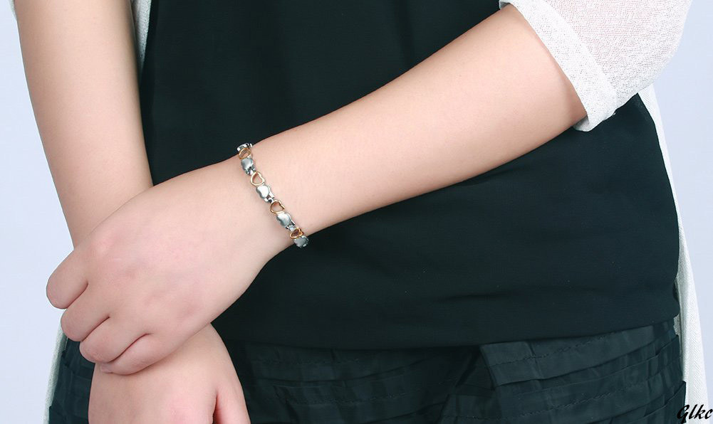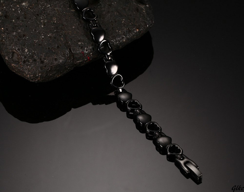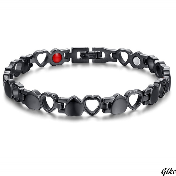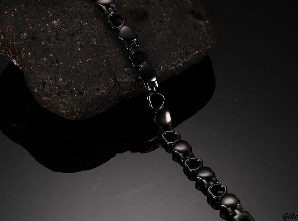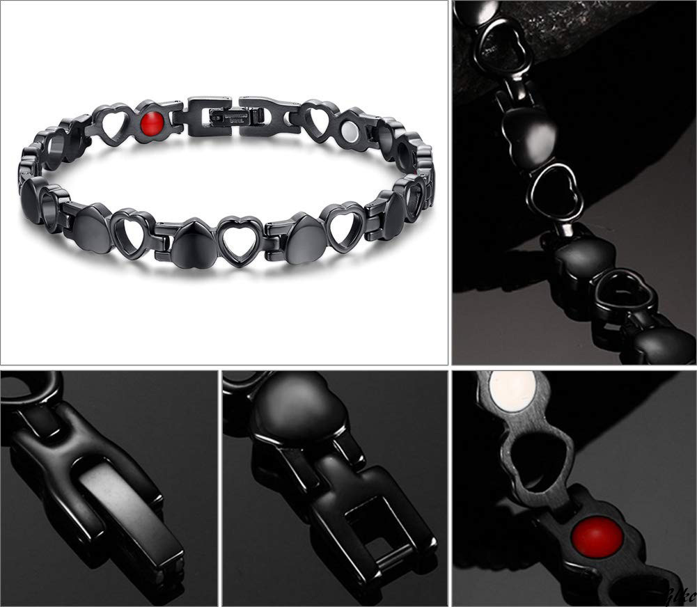 【優れたデザインと実用性を兼ね備え、長期間使用できる】ゲルマニウムブレスレット レディース ステンレス素材 磁気効果 ブラック
