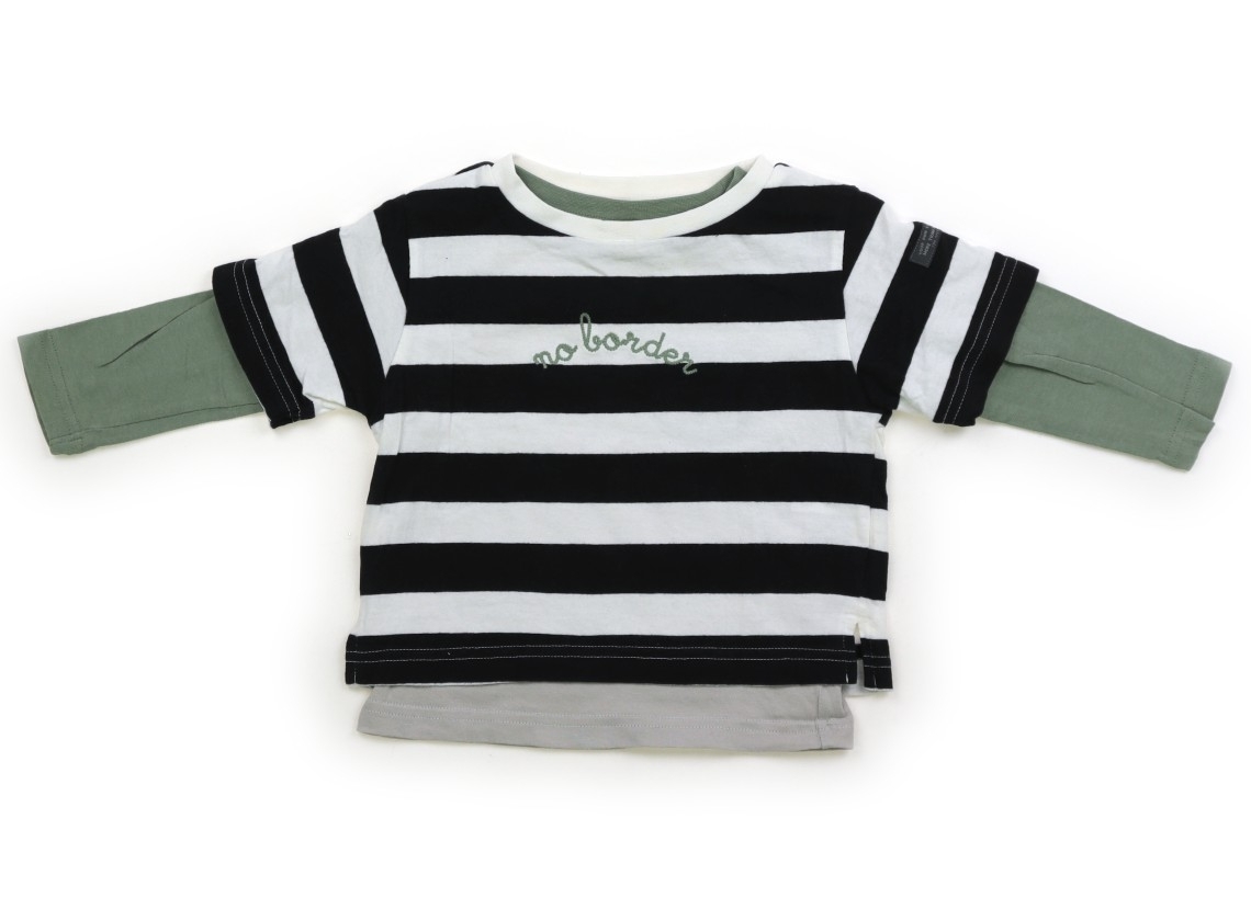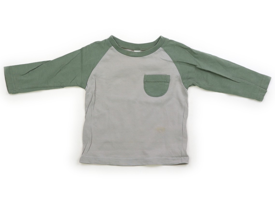 Tシャツ2枚セット。ロンTに色褪せと腹部サイドに黄色いシミあり。半袖Tの首元に黄ばみが見られます。