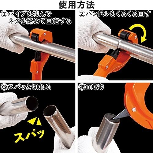 •  パイプを挟んで回すだけでコンパクトにカット!