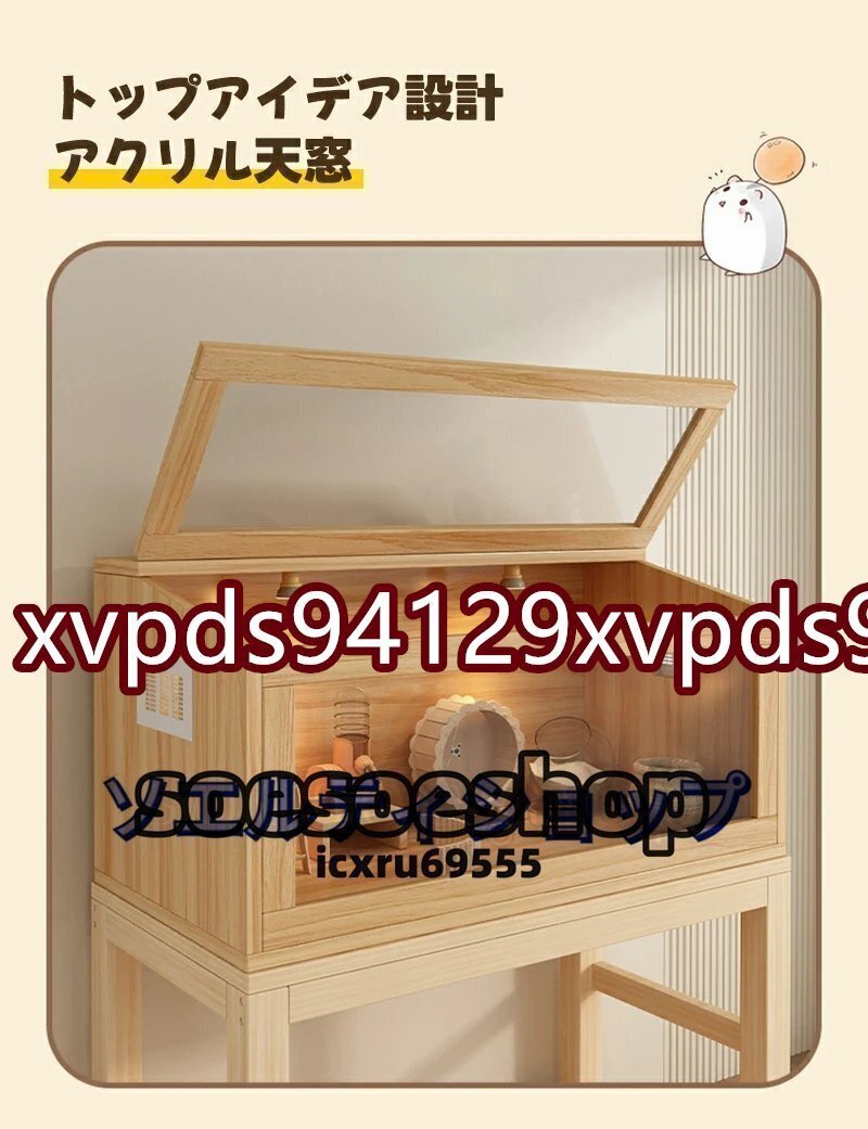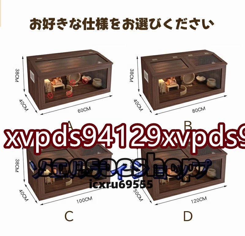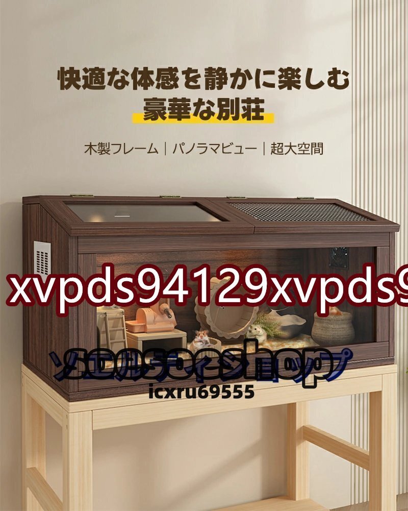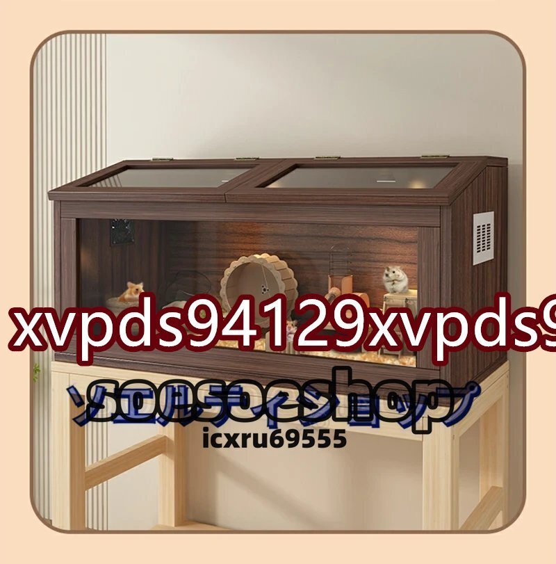新品 ハムスター ケージ 飼育ケージ 給餌ケージ 大きめ モルモット リス ペット 小動物 透明 通気 脱出防止 木製フレーム 80*40*38cm