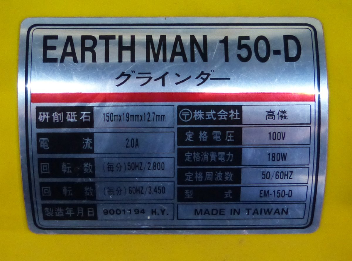 ☆EARTH MAN アースマン 髙儀 両頭 グラインダー【EM-150-D】USED品☆ | |