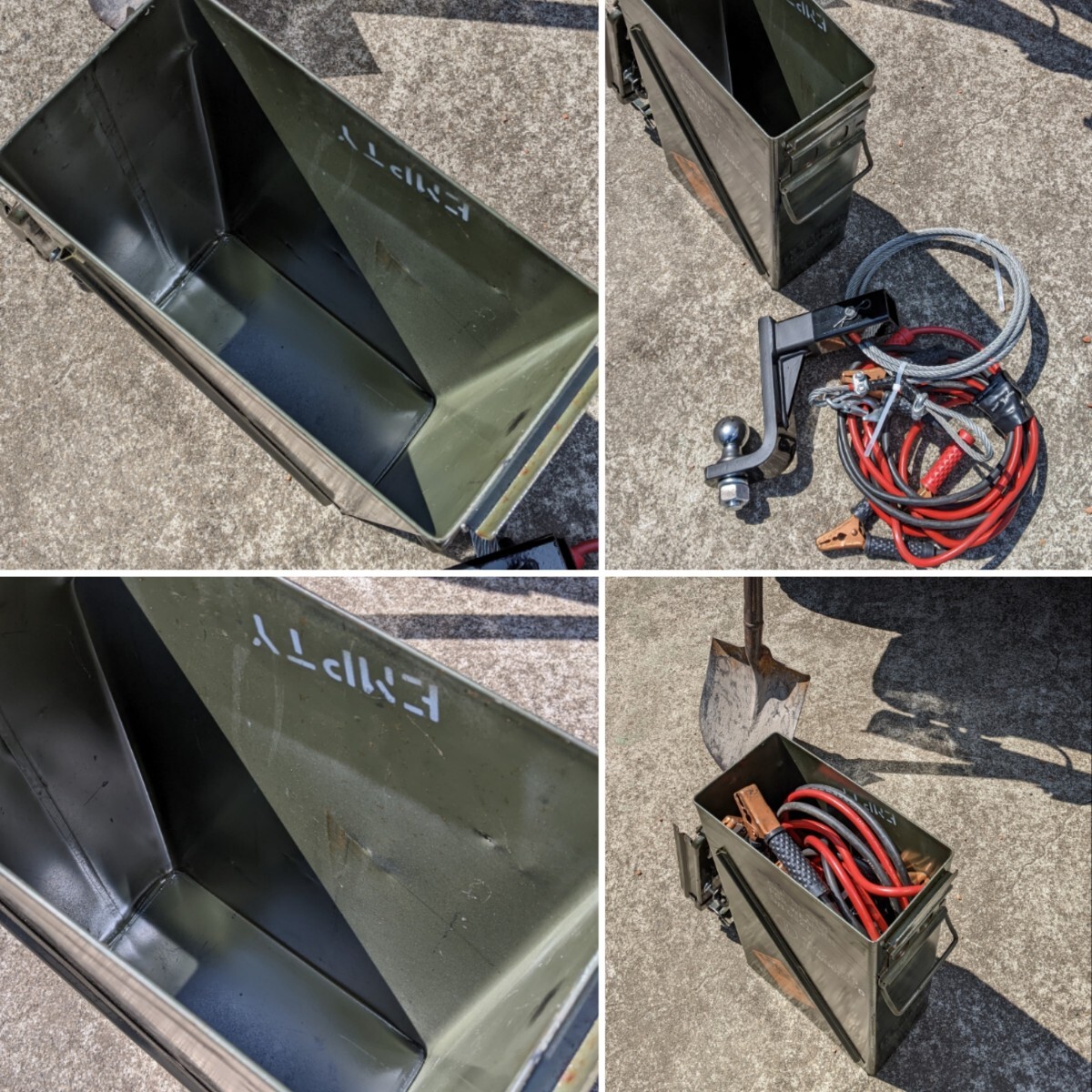 ■アンモボックスは、60mm弾薬箱(PA-124)で、米軍放出品を使用し、蓋部にシャベルホルダーとブラケットと固定するナットを溶接しています。