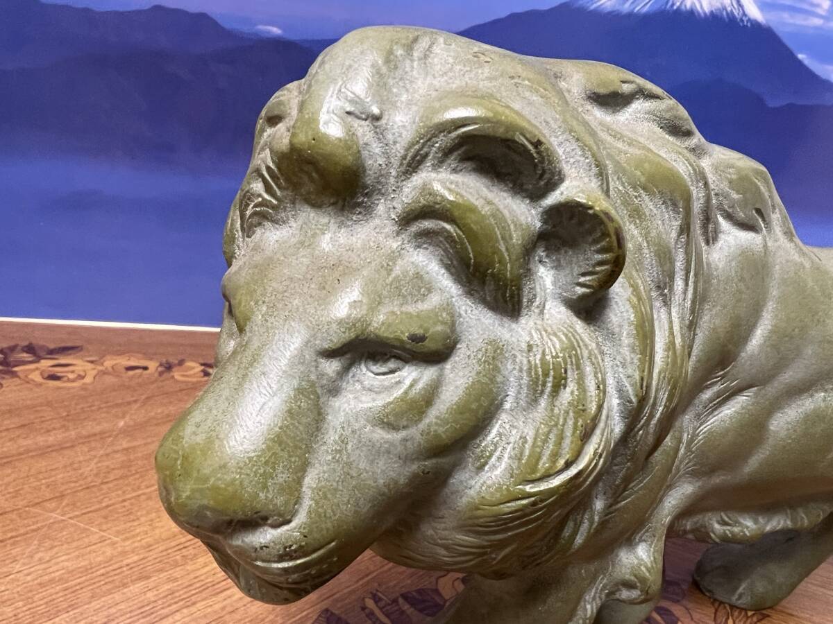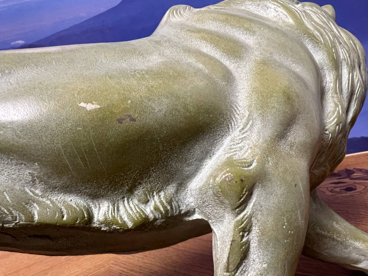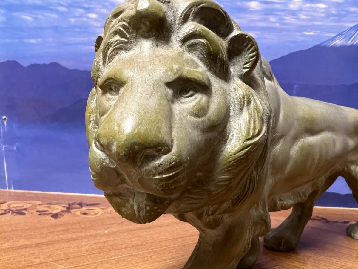 中古 鉄製 ブロンズ仕上げライオン 獅子 鉄工工芸品 百獣の王 権力の象徴 置物 オブジェ 威風堂々 ライオンズ 西武 野球ファン 全長37cm