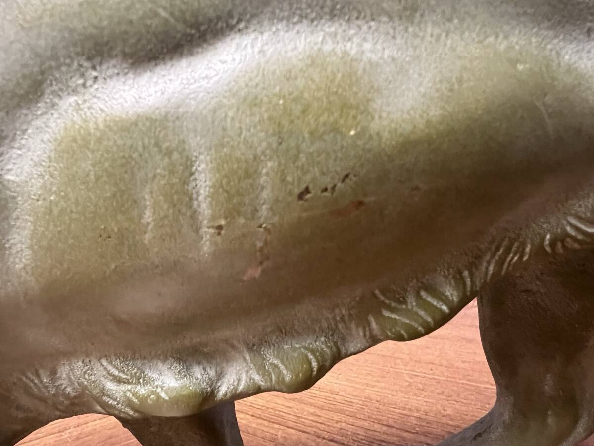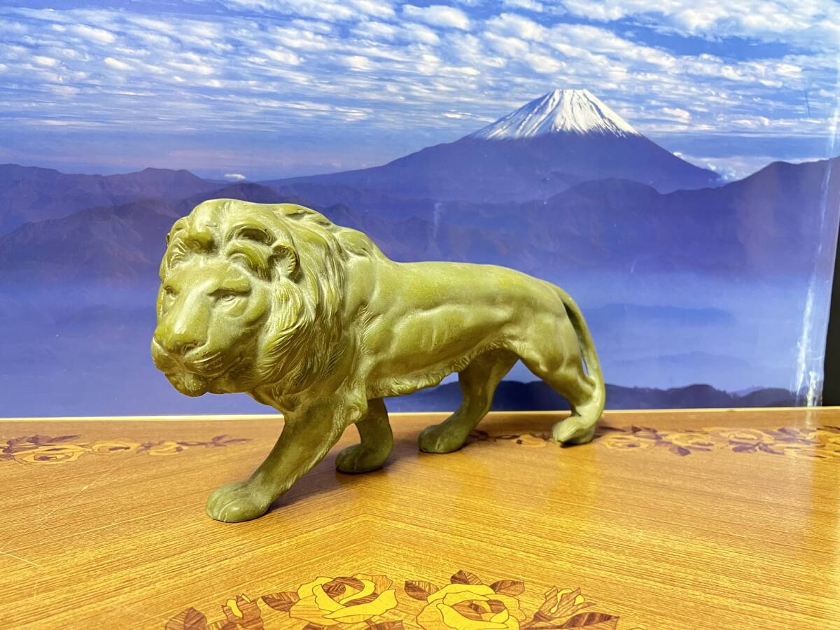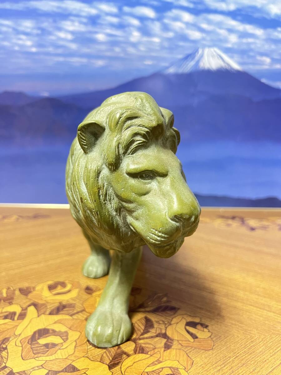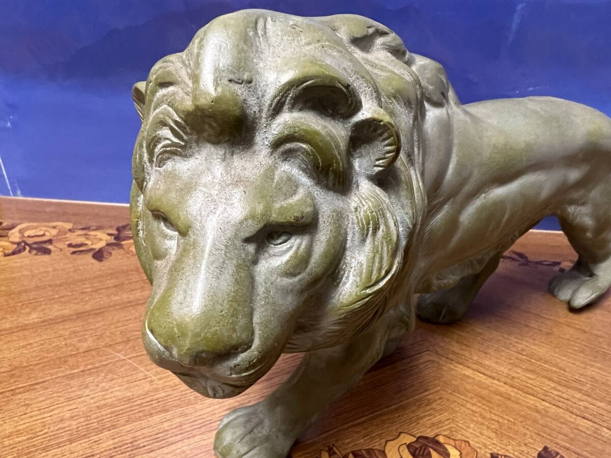 中古 鉄製 ブロンズ仕上げライオン 獅子 鉄工工芸品 百獣の王 権力の象徴 置物 オブジェ 威風堂々 ライオンズ 西武 野球ファン 全長37cm