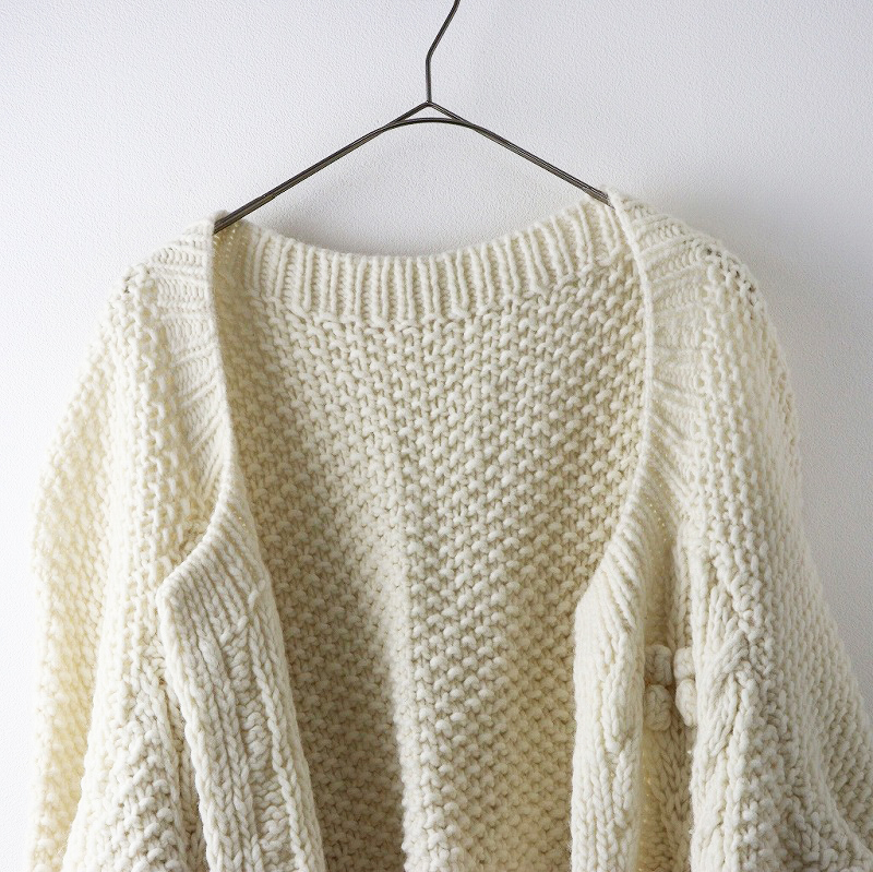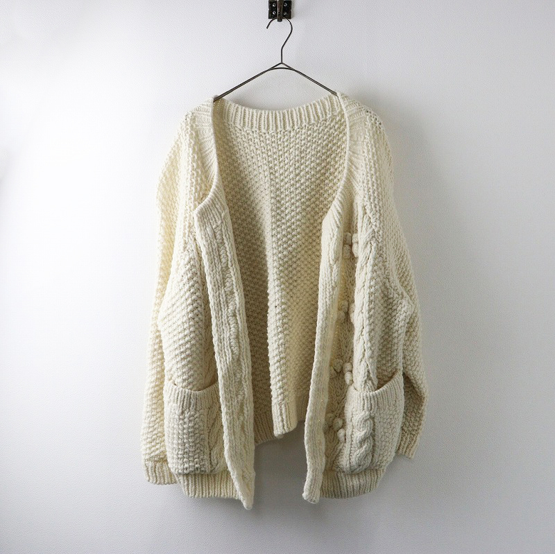 美品 定価3.8万 2024AW ネストローブ nest Robe ペルーボッブルニットカーディガン F/オフホワイト ざっくり ウール【2400014360875】