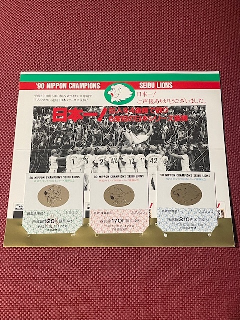 西武ライオンズ '90日本シリーズ優勝記念乗車券 硬券3枚セット (管理番号103-23)