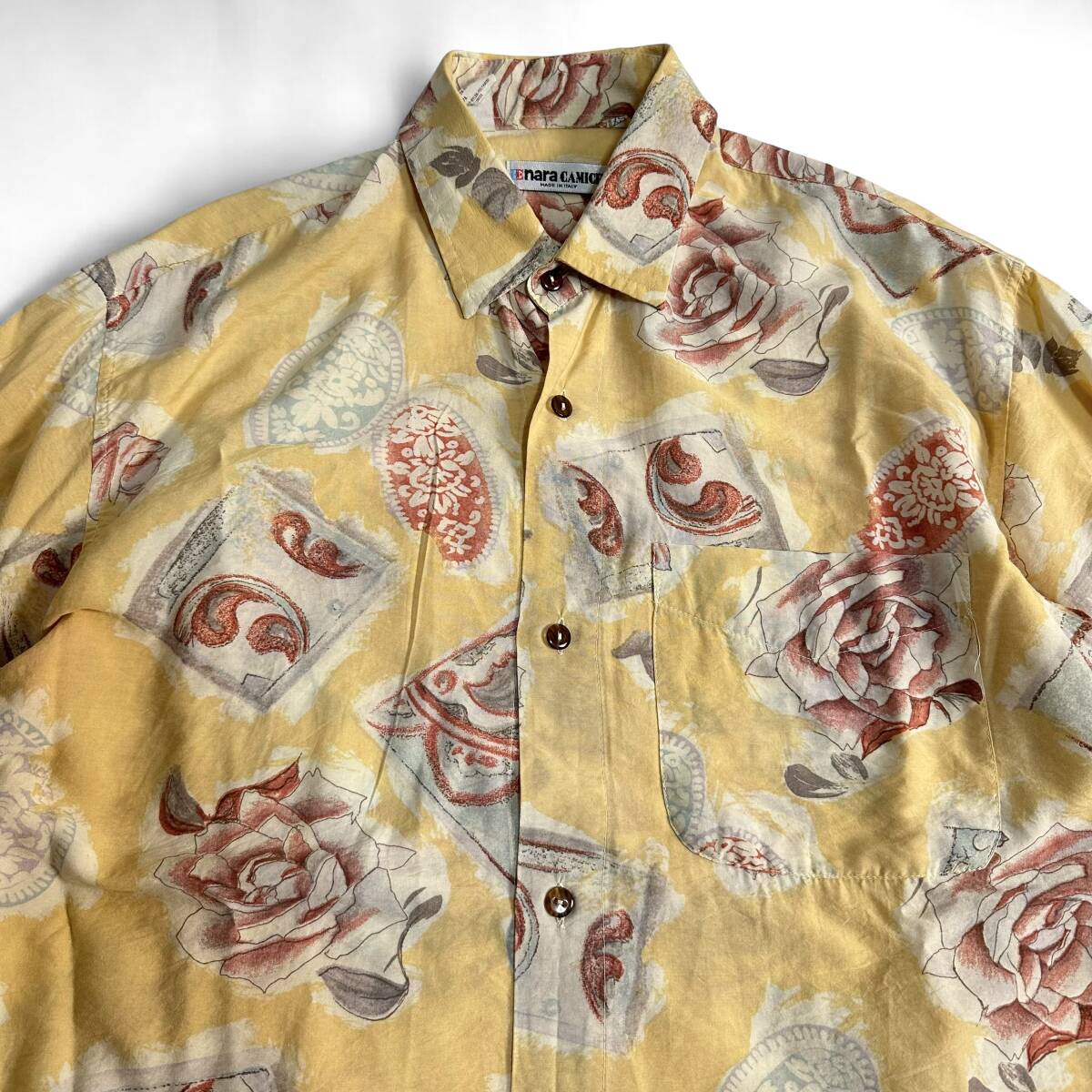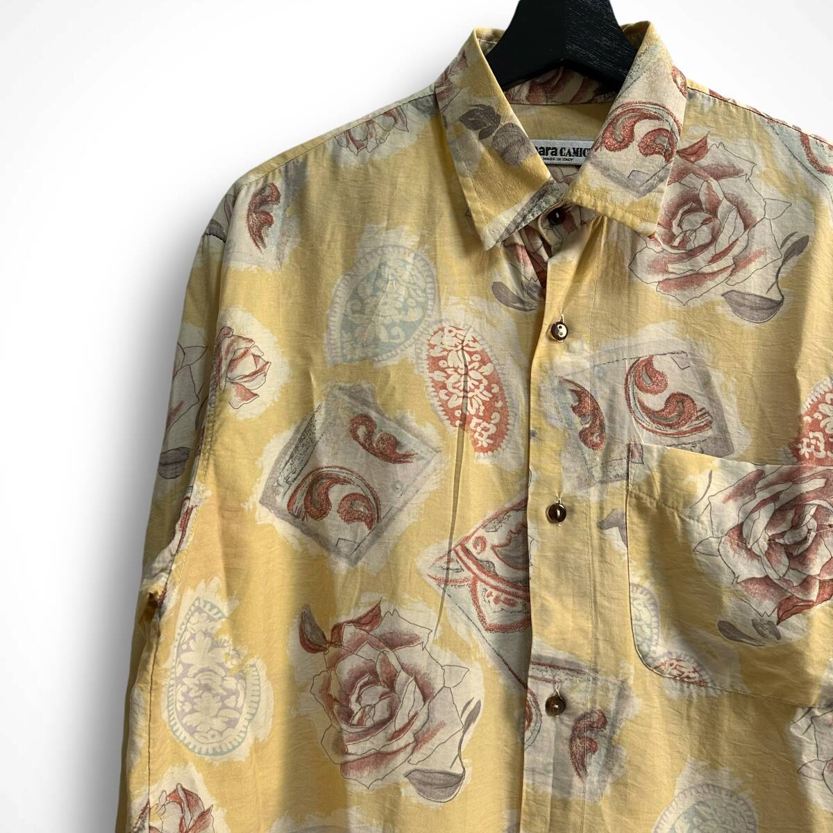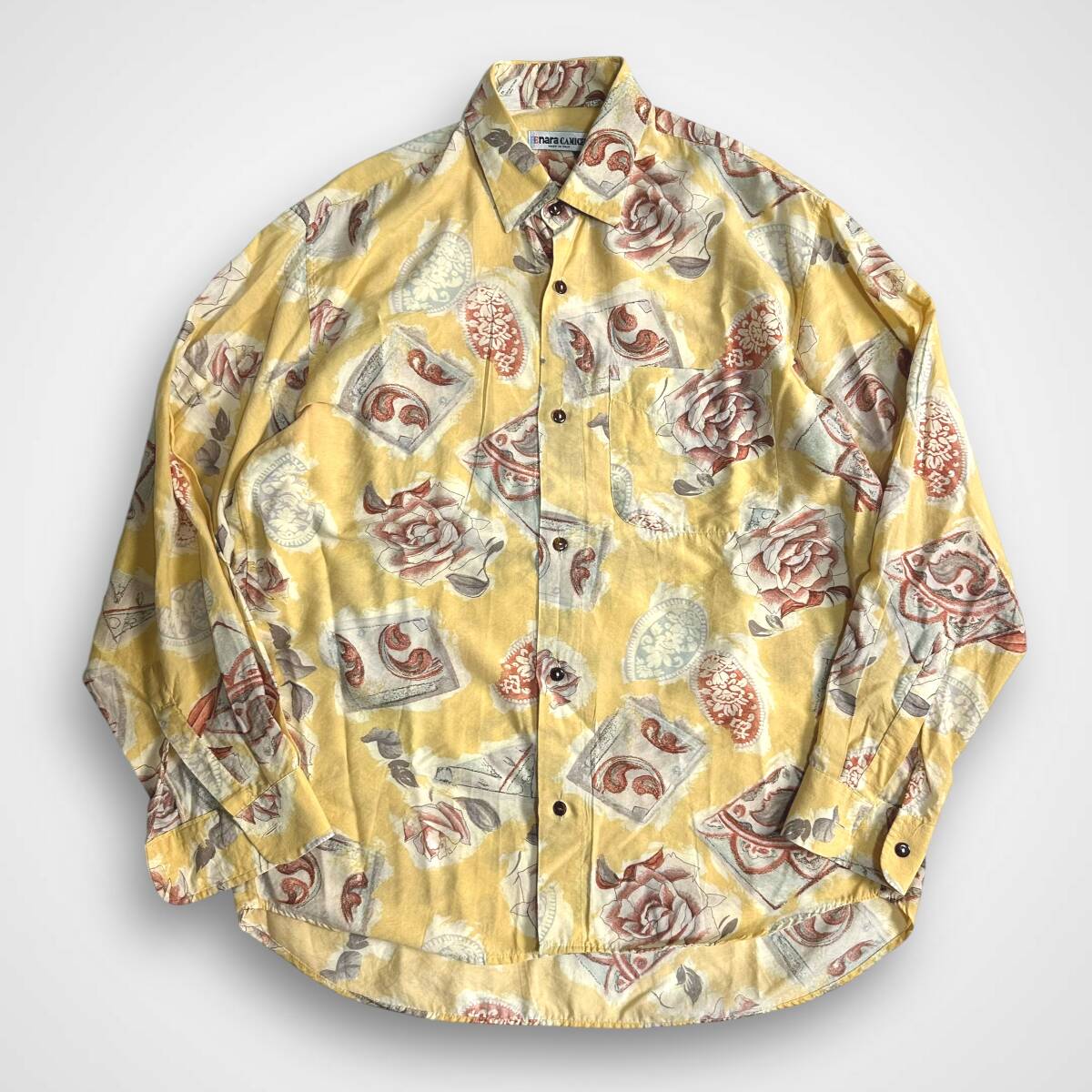 希少【NARACAMICIE】Euro Vintage ナラカミーチェ 80s 90s イタリア製 総柄 アート 花柄 ペイズリー レトロシャツ ビンテージ古着