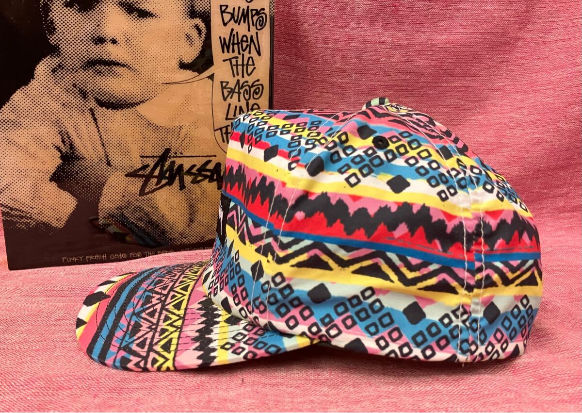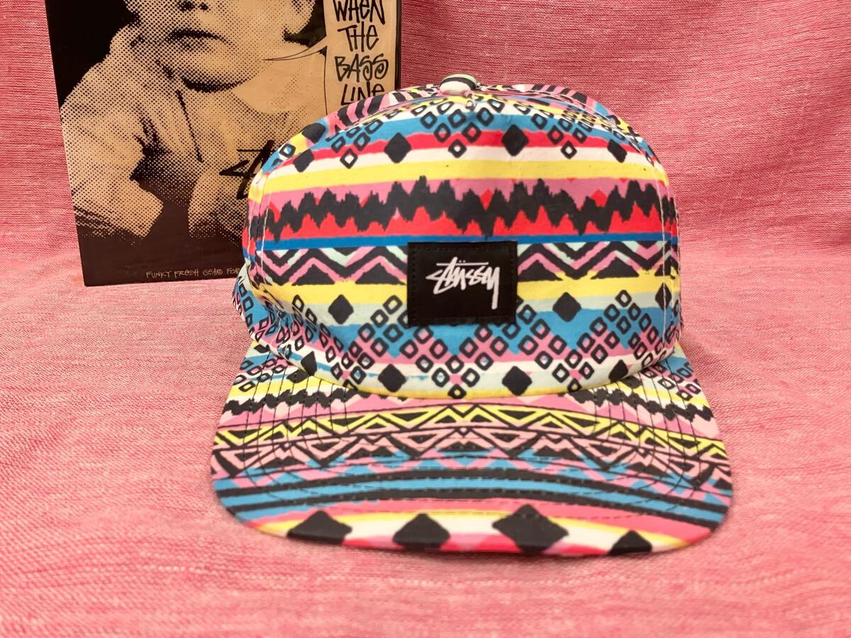 VINTAGE ヴィンテージ 00s Stussy ステューシー エスニック トライバル 柄 ストライプ マルチカラー スナップバック キャップ