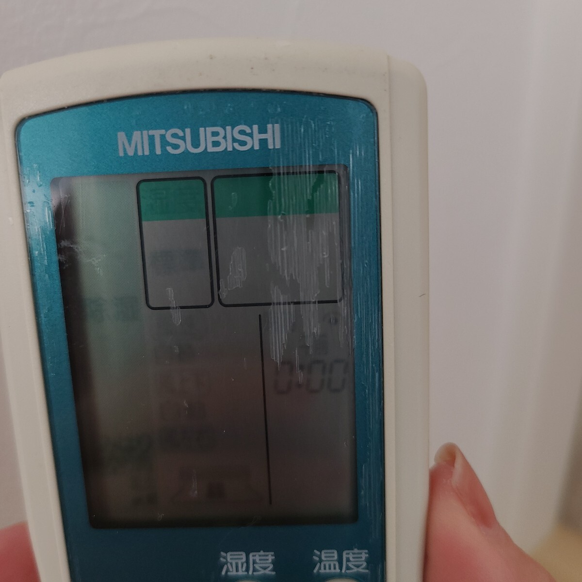 MITSUBISHI製のエアコン用リモコン、温度や風量を簡単に調整可能。