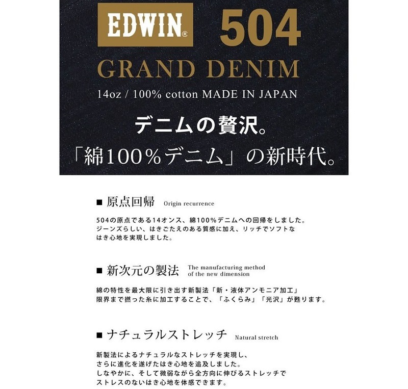 エドウィン 504 グランドデニム ルーズストレートパンツ W48 セカンドクラス 濃色ブルー GRAND DENIM 大きいサイズ 日本製 ED504-133-S