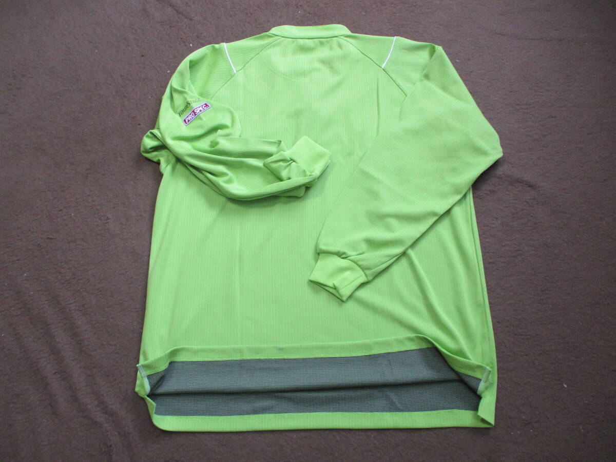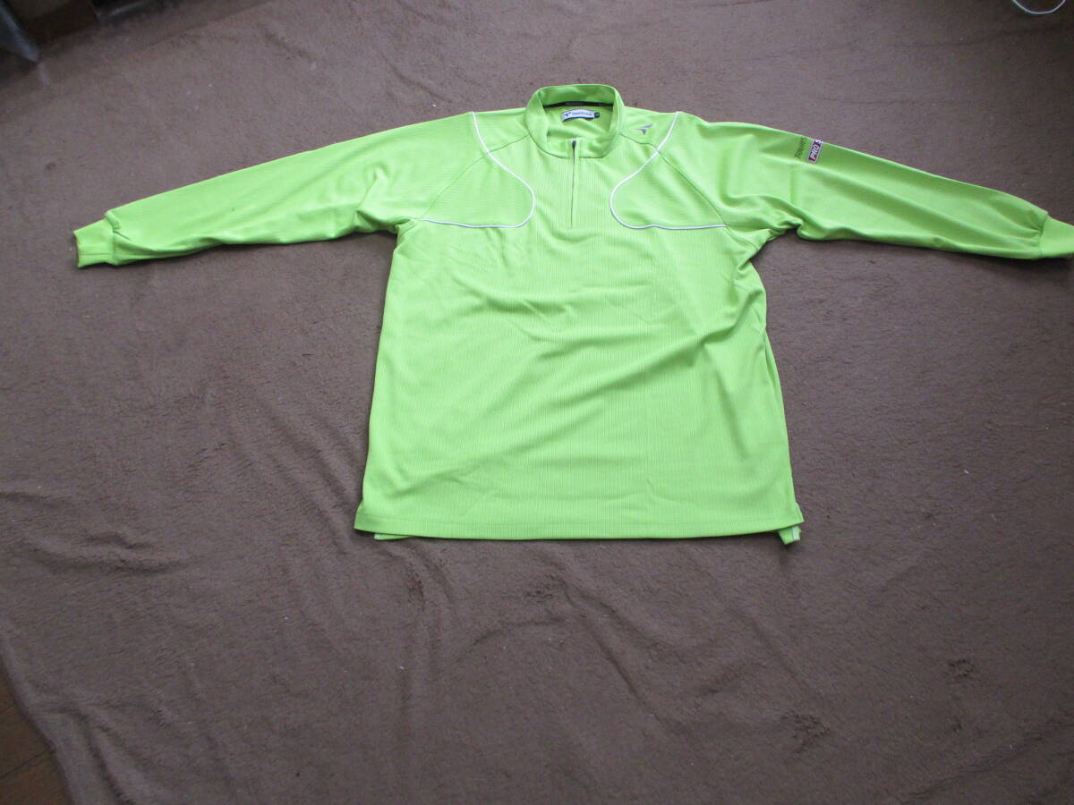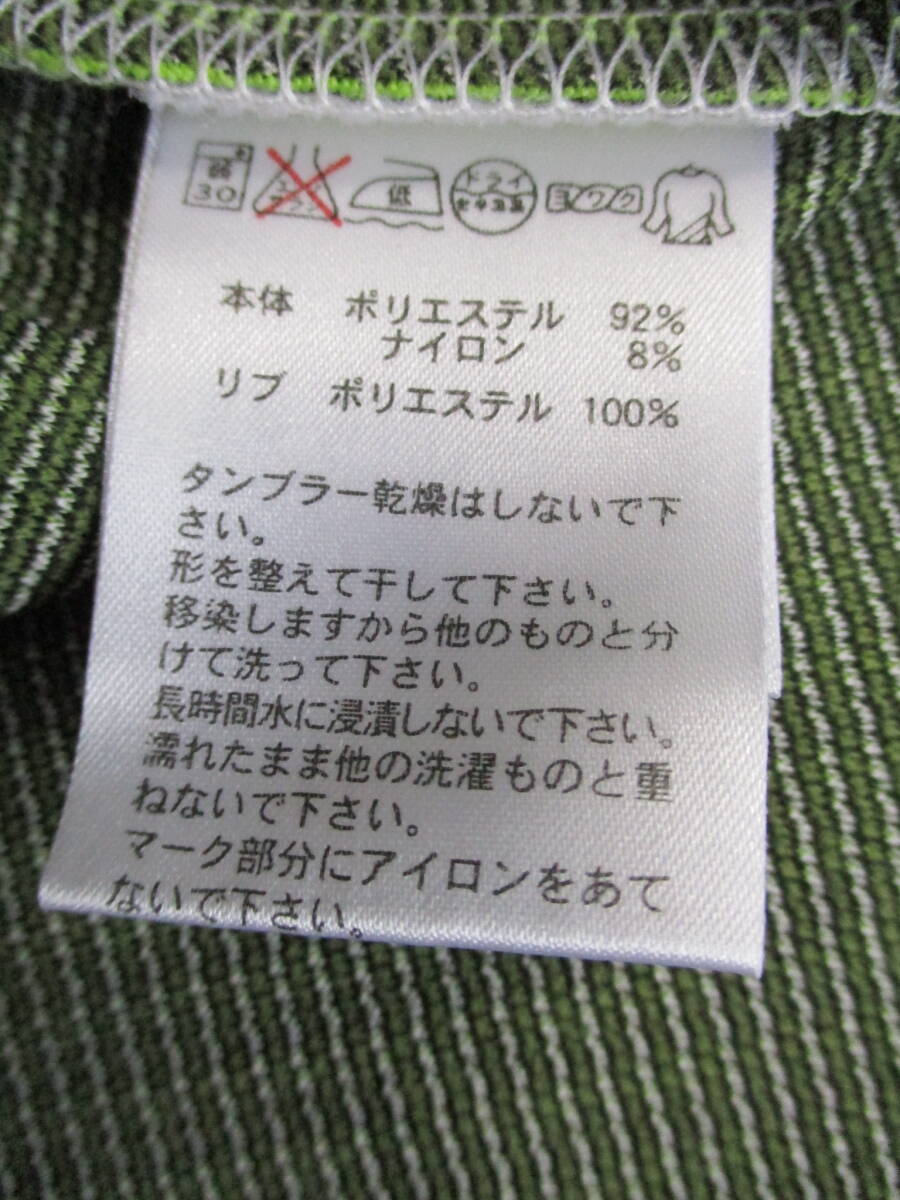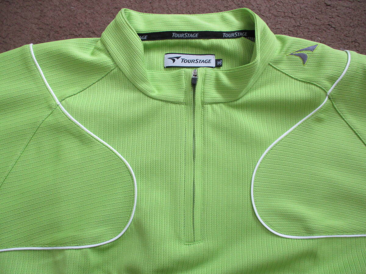 ハーフジップタイプとなり、カラーは、シュールで、ファッション感覚溢れる、リブ・ストライプ調のイエローグリーン“