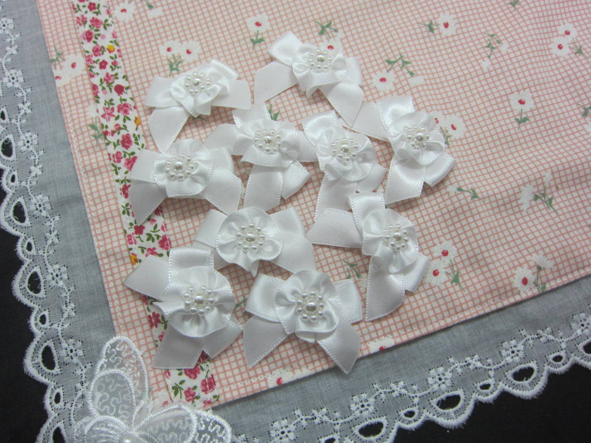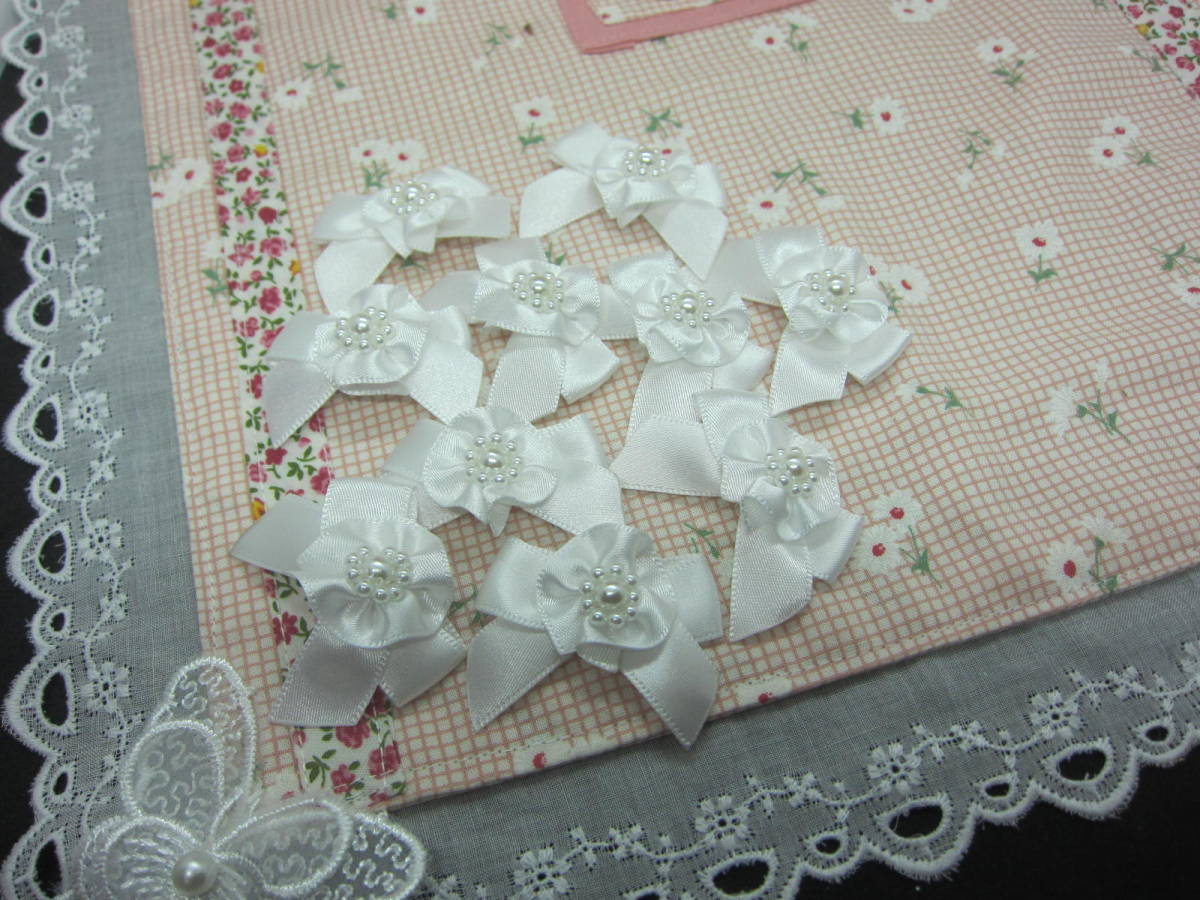 ♪オリジナル 花パールりぼん ホワイト ハンドメイド