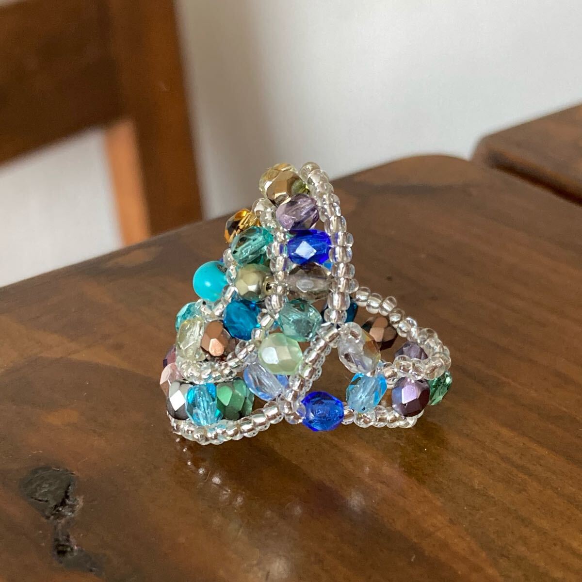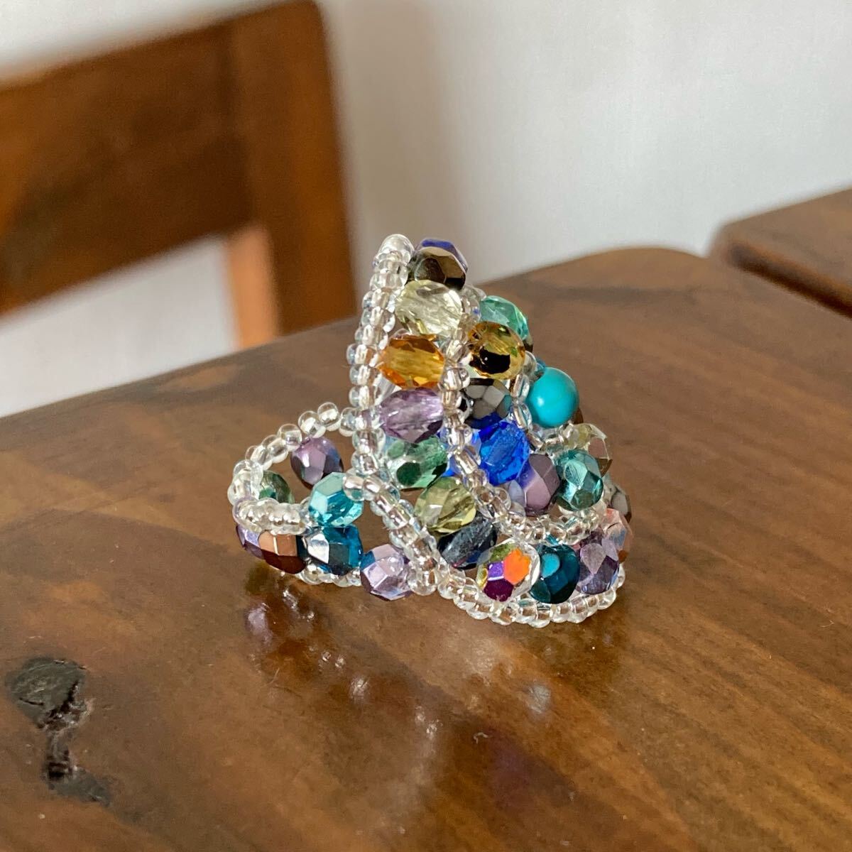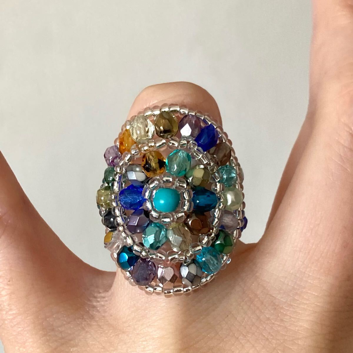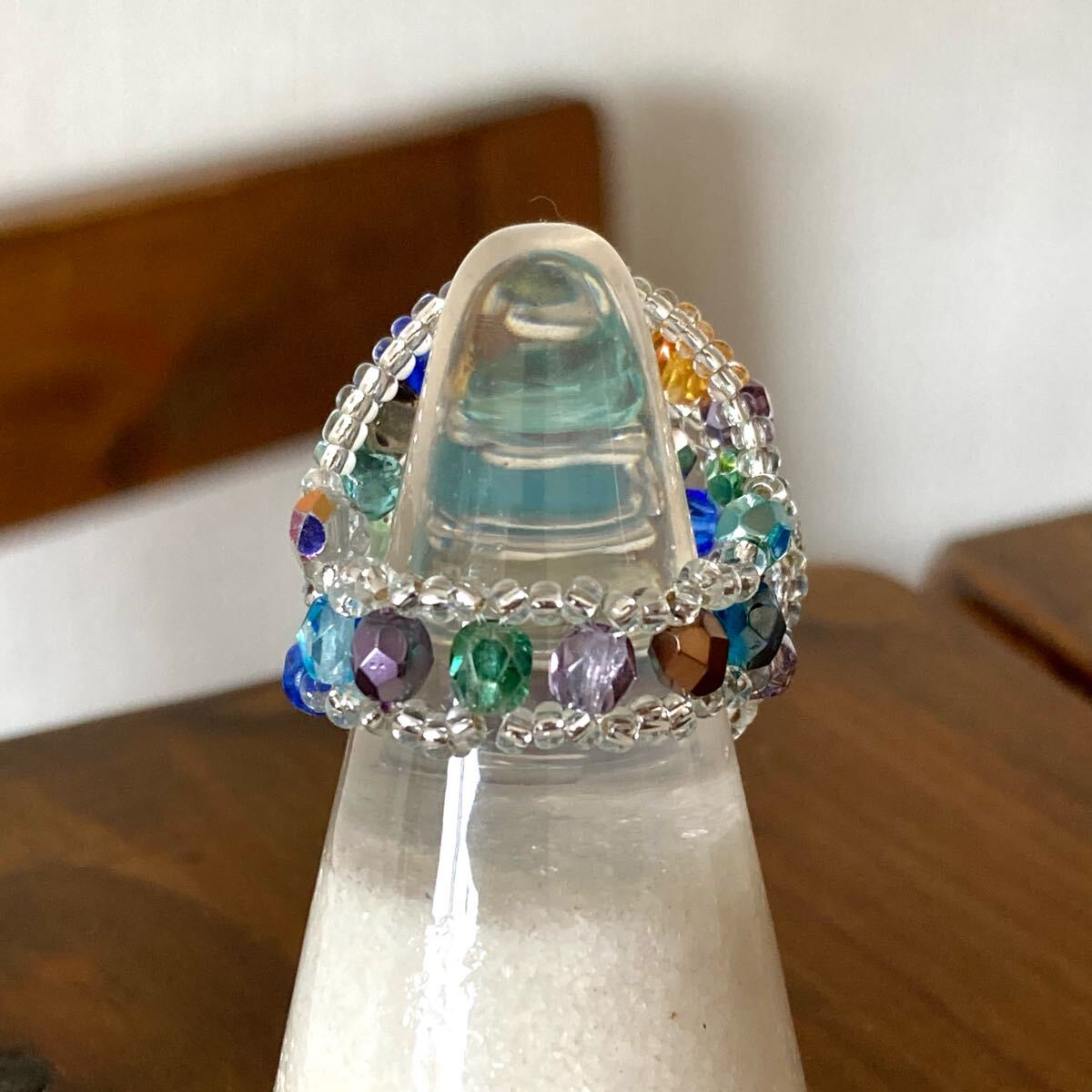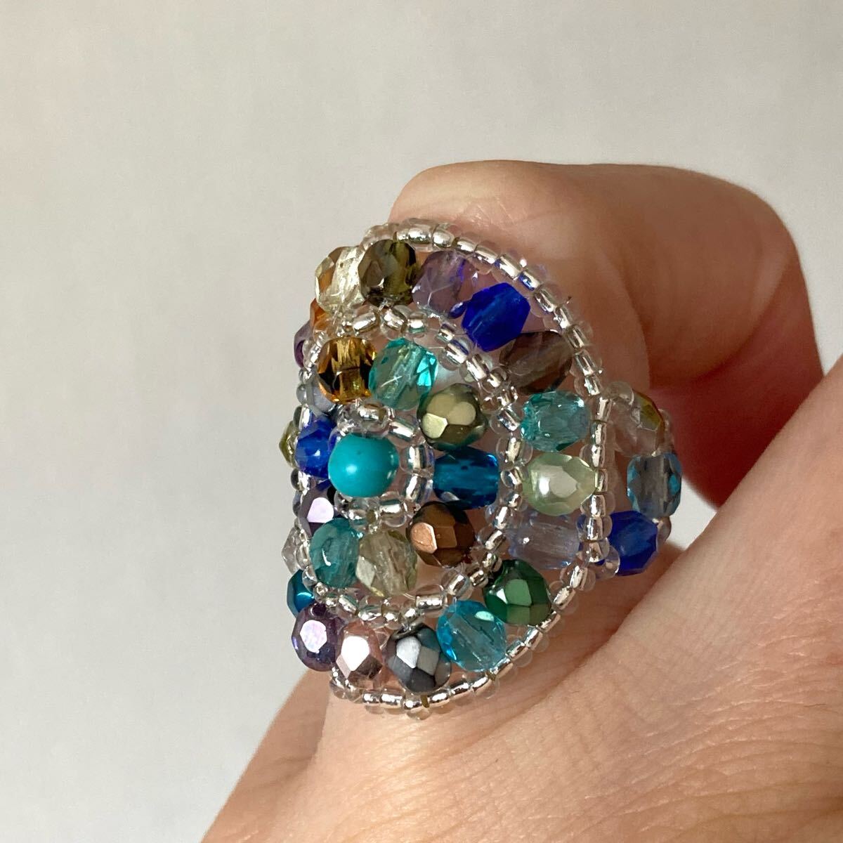 ビーズ  リング  指輪  ハンドメイド 大きい丸型 寒色系ミックス 15-17号です。