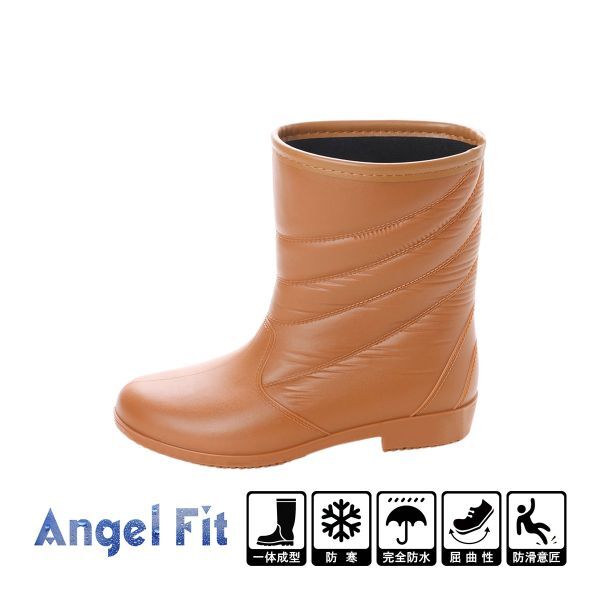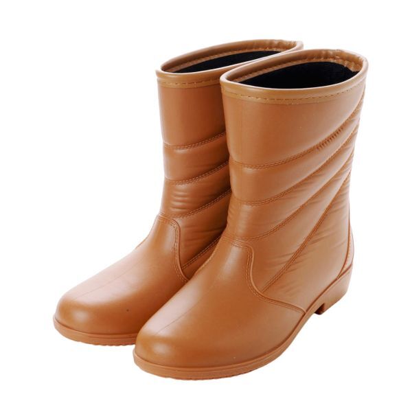 飾りステッチがポイントの 完全防水 ミドル丈 防寒 レインブーツ。