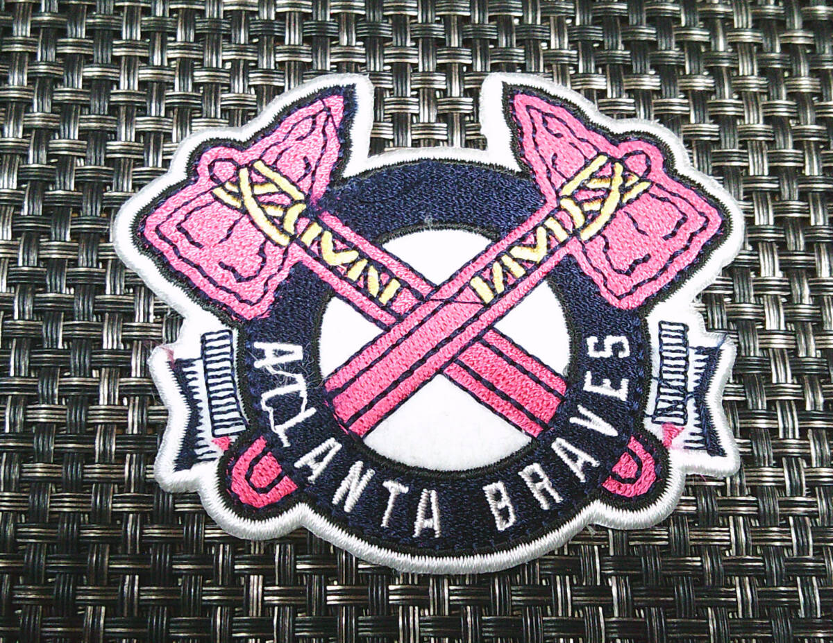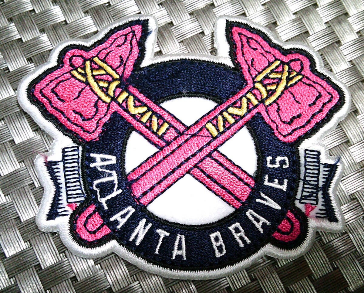 NM《桃双斧BR》◆新品未使用 MLBアトランタ・ブレーブスAtlanta Braves野球 ベースボール 刺繍ワッペン(パッチ)■ 野球 ◇ ◎アメリカ スポーツ メジャーリーグ ◆◇■サバゲー ミリタリー ファッション■
