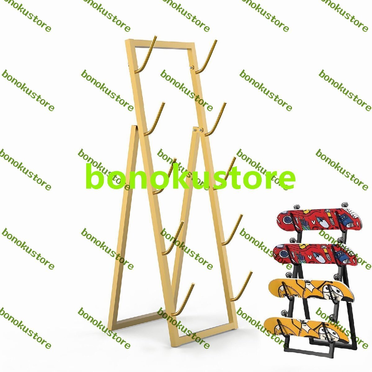 スケートボードラック スノーボードラック サーフボード 収納ラック 収納しやすく 省スペース ロングボード、ショートボード兼用 ウェイクボード、SUP、スノーボード、パドルボード、スケートボード、カヤック 多機能収納ディスプレー ゴールド 5階