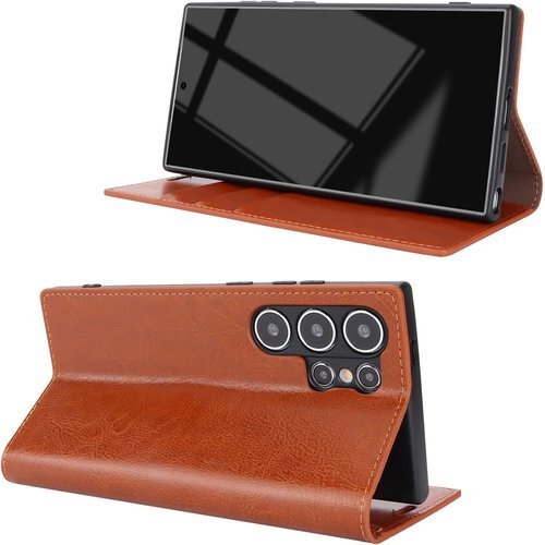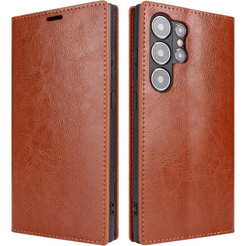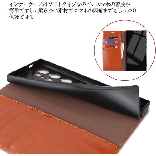 Galaxy S24 Ultra ケース 手帳型 マ 沢加工 牛革 レザー 財布型 カード入れ ライトブラウン 1335