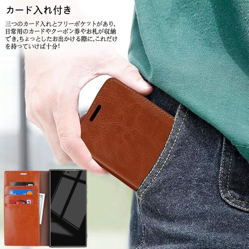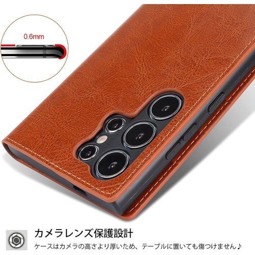 Galaxy S24 Ultra ケース 手帳型 マグネット無し 耐衝撃 カードケース Galaxy S24 Ultra SC-52E doo SCG26 au 手帳ケース サムスン ギャラクシー S24ウルトラ カバー スマホ 携帯ケース 財布型 適用 case iCoverCase マグネットなし スタンド機能 光沢加工 牛革 レザー 財布型 カード入れ ライトブラウン 1335