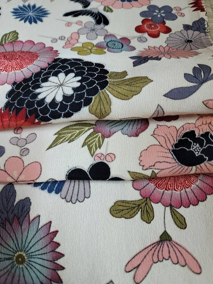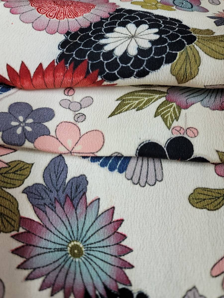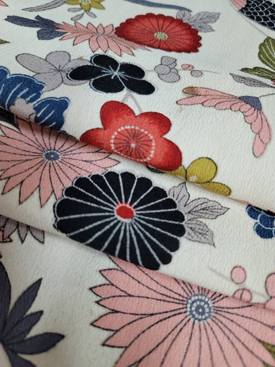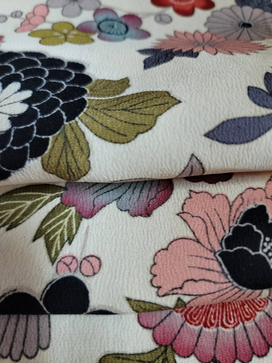 正絹ちりめん生地の時代物の着物のトキ済の