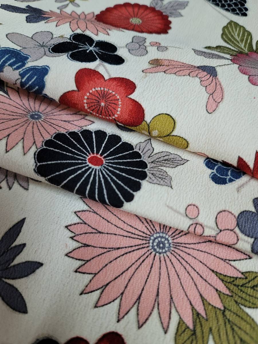 即決550円☆リメイク☆古布☆アンティーク☆つまみ細工☆正絹縮緬着物はぎれ☆☆手芸材料23㎝×100㎝