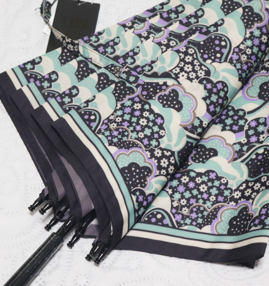 | 新品タグ付き【ANNA SUI アナスイ】洋風パゴダ型 幾何学フィオーリ風柄 長傘 雨傘 v6731 プレゼントにも最適 |