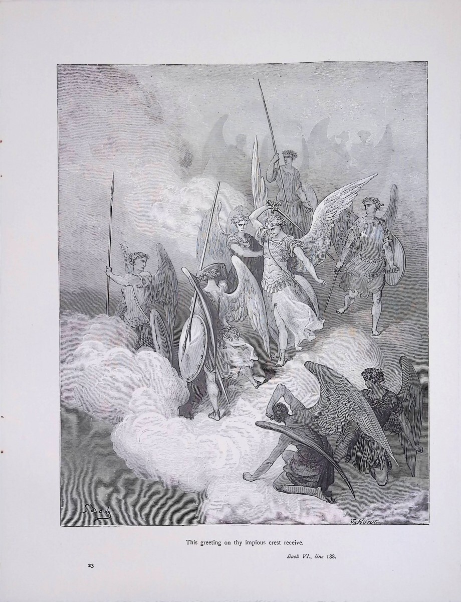 19世紀にNewYorkのCassell社から刊行されたミルトンのParadise Lost のドレので挿絵です。サイズは、24.5cmx32cmで、裏は白紙です、状態は、良く保存されています。紙は、しっかりとした厚手の上質紙で、良く保存されています。額はありません。Gustave Dore 、オリジナル