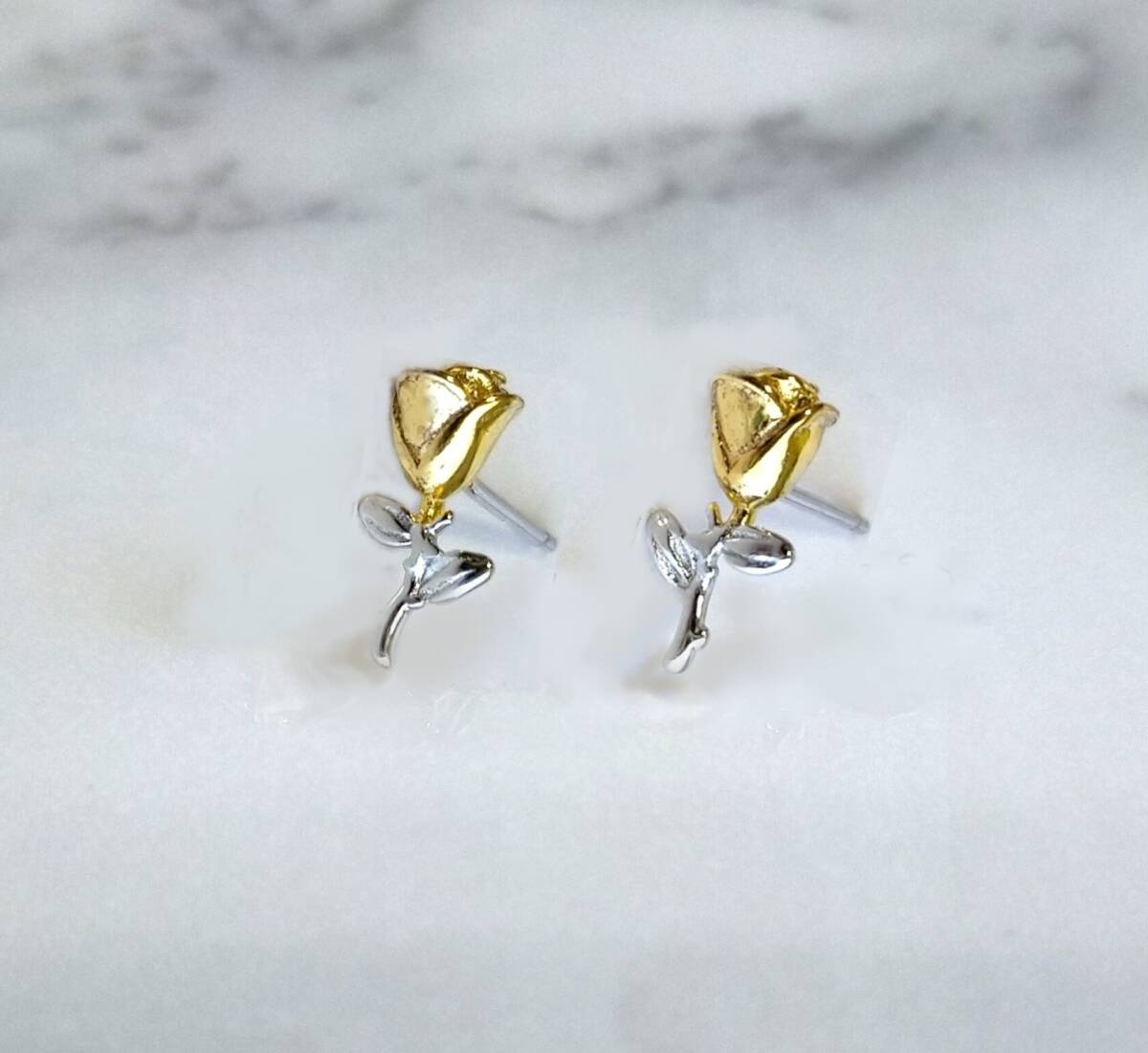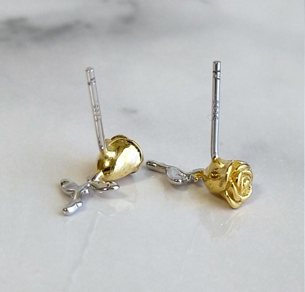 ・商品ローズ ピアス シルバーとゴールドコンビ 1ペア