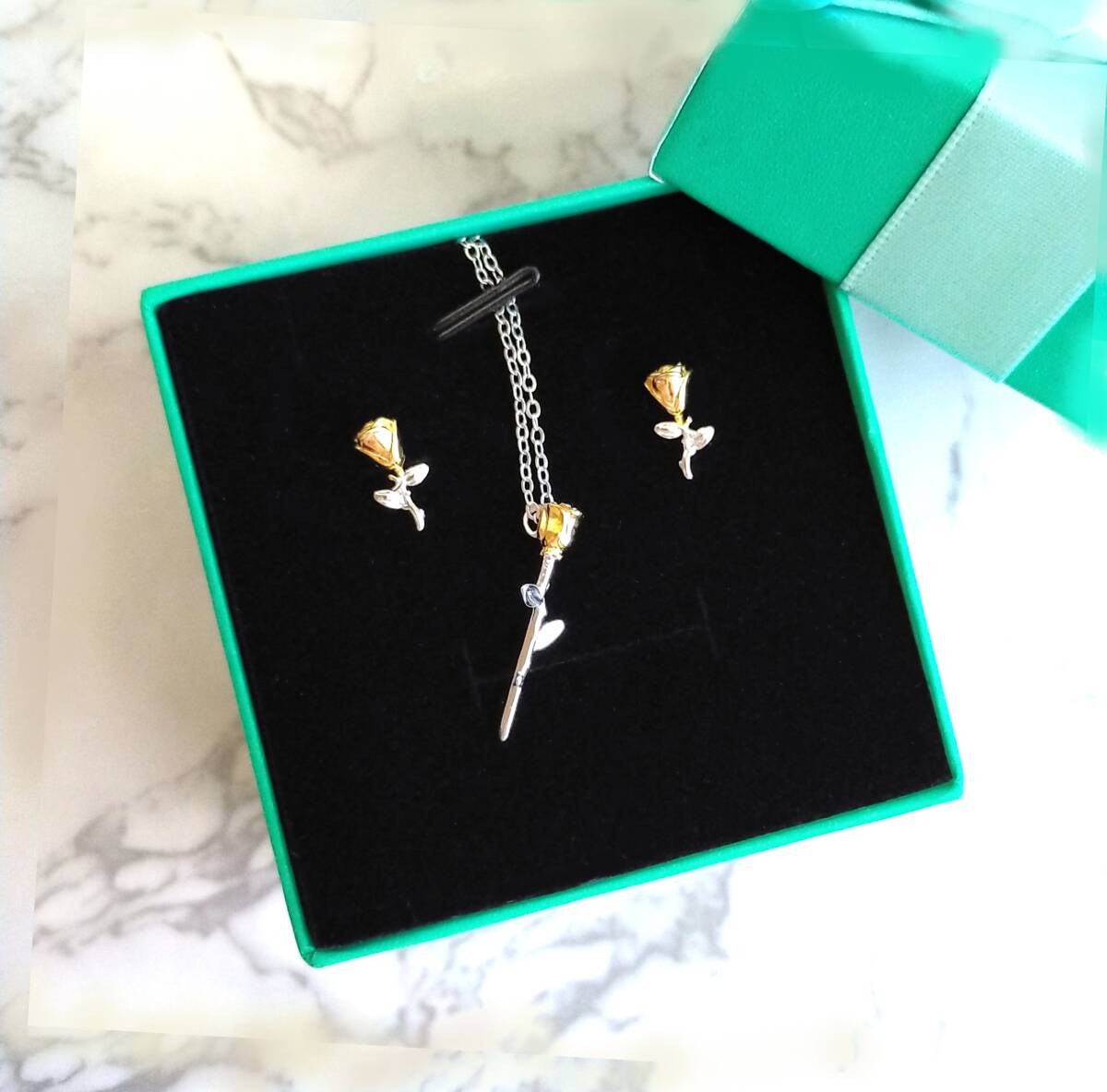 2点セット ローズ ネックレス Sサイズ ローズ ピアス 両耳 シルバー925 薔薇 バラ ばら ゴールド 星の王子さま