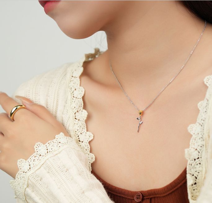 ・商品:ローズ ネックレス シルバーとゴールドコンビ Sサイズ1点