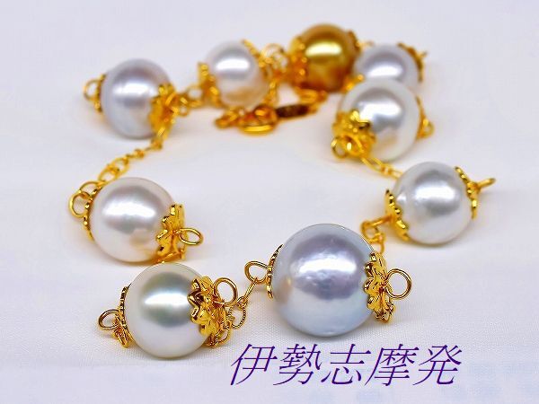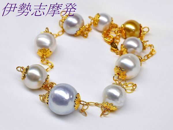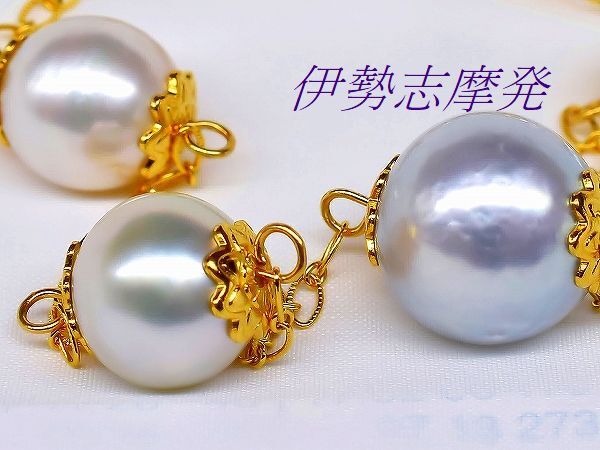 【真珠の種類】 南洋白蝶ナチュラル真珠 【珠サイズ】 センター14㎜up・端の一番小さなもので9,83㎜ 【珠の形状】 ほぼラウンドからセミラウンド 【色】 ホワイト・シルバーカラー・茶金ゴールド 【巻き】 非常に良い◎ 【照り】 非常に良い◎ 【キズ】 ほとんど無し・巻き過ぎからの膨らみ 【エクボ】 数個あり・画像参照 【金具の材質】 チェーン引き輪ともシルバー製 【デザインの大きさなど】引き輪部分までの全長46,5㎝ ◆誰もが輝ける瞬間を創り出す・・・凛とした輝きの白蝶真珠、迫力のあるネックレスでお楽しみ下さい。◆ 珠サイズもセンター14㎜upにゴールド珠で10,08㎜と大きく華やかで、高級感がありゴージャスな印象の白蝶真珠のネックレス。真珠の女王と呼ばれるに相応しい気品溢れる輝きを放っています。 パーティーなどのきらびやかなシーンで使われることが多いですが、その白蝶真珠をもっと気軽にお使い頂きたく、ステーションネックレスにしました。とても巻きが厚く深みのある輝き珠でお作りしました。 清楚なホワイト・シルバーカラーをベースに、ブルーグリーンやほんのり赤みの浮かぶ美しい珠に、深みのある濃い茶金ゴールドカラーなどの多彩な色が引き立てます。 マルチカラーのネックレスは様々な装いに合わせやすく、ゴールドxホワイト、淡いブルーグレーカラーがお顔回りをトーンアップさせ、明るく美しい表情を演出します。 シルバーチェーンも動きに合わせてキラキラと煌めき綺麗♪美しく強い真珠光沢を放つ華やかさがあるステーションネックレス、優雅で気品あるデコルテを演出します。お食事会やセミフォーマルなシーンまで幅広く活躍してくれることでしょう。 | ||||||||