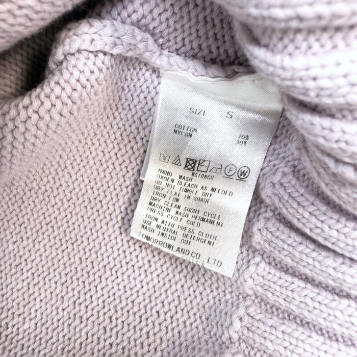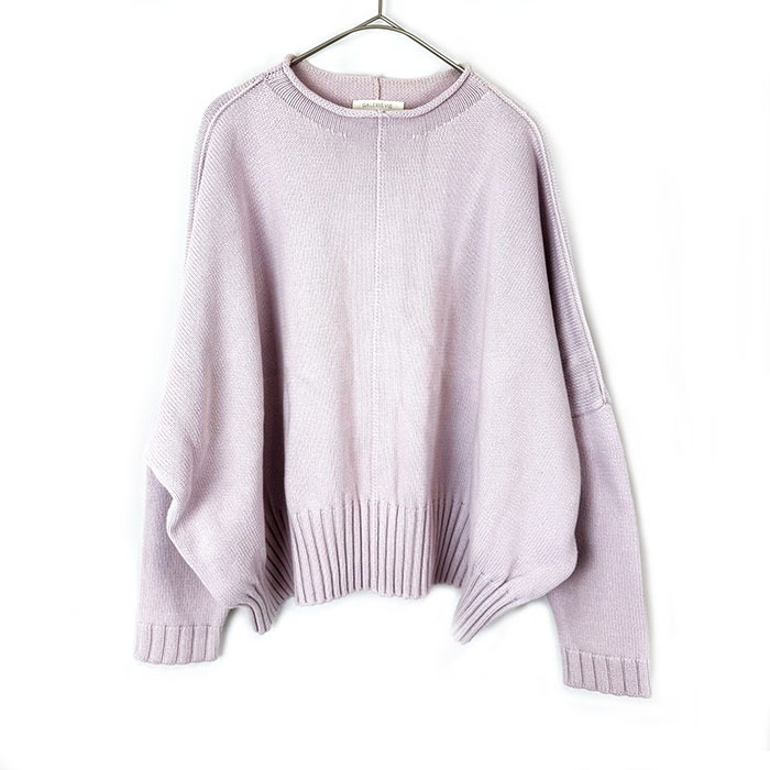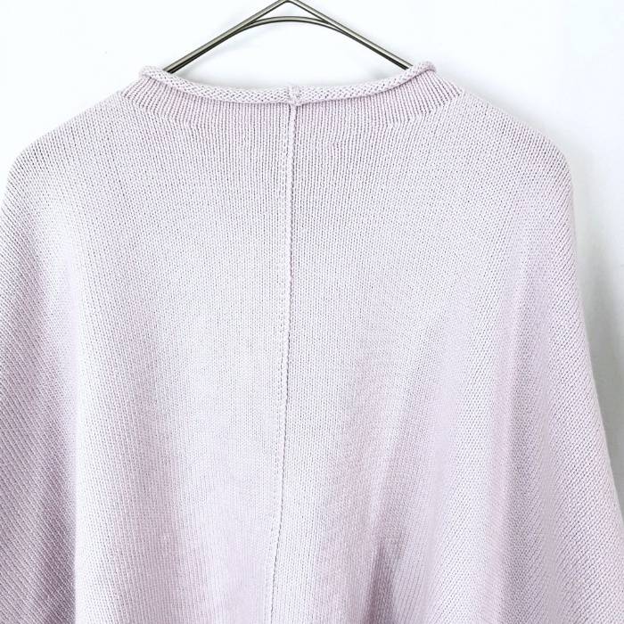 | 【コメント】 ゆったりドルマンシルエットのニットです。綺麗なライトパープルカラー。使用感が少々あり、袖口、首周りうっすら黒ずみ、毛羽立ち、毛玉、左袖口付近にに数ヵ所汚れがあります。傷みはなくまだまだご着用いただけるお品物です。 |