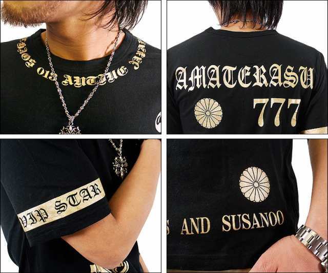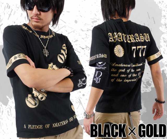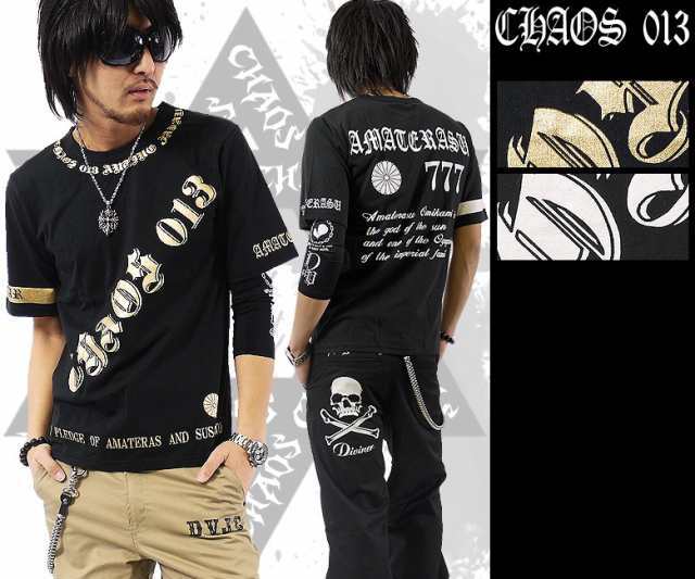 1円スタート CHAOS JAPAN ICEプリント元腕サイドバック 半袖Tシャツ ch-ry-2003新品 ブラックxゴールド M