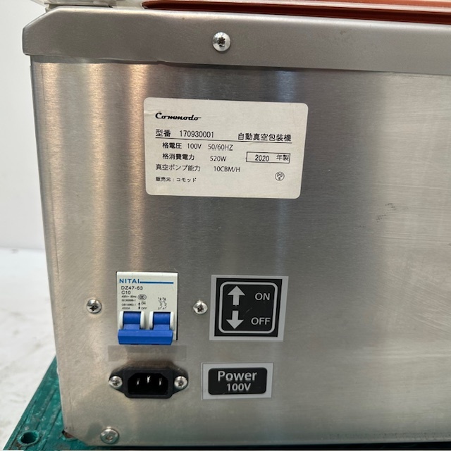 能力 | サイズ[チャンバー内寸法] 280×380×H90mmサイズ[シール有効寸法] 長さ250mm×幅8mmサイズ[最大包装材寸法] 250×380mm |