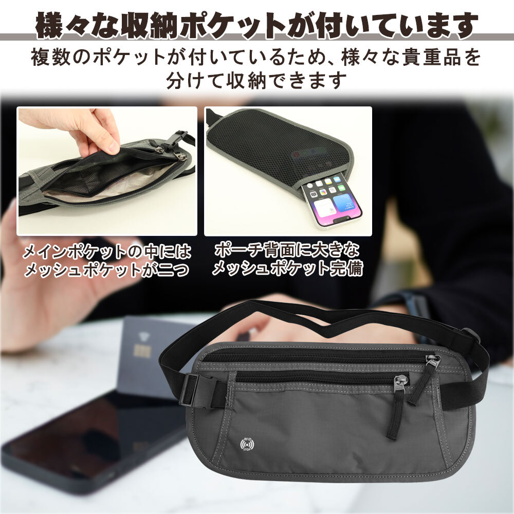 セキュリティポーチ スキミング防止 軽量 薄型 パスポート パスポートケース 盗難防止 貴重品 防犯 防災 ウエストポーチ 旅行 ボディバッグ