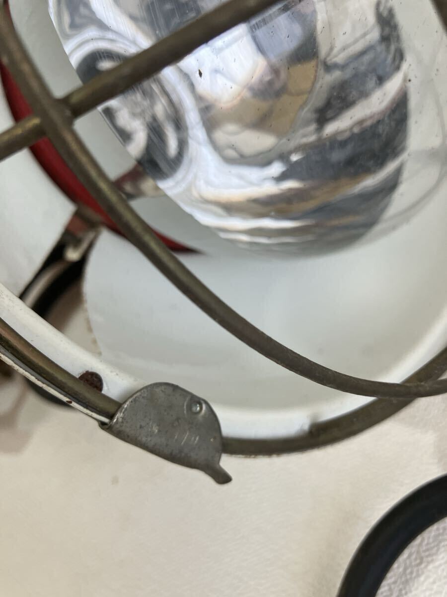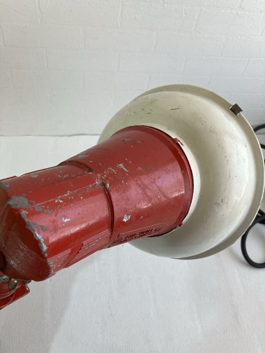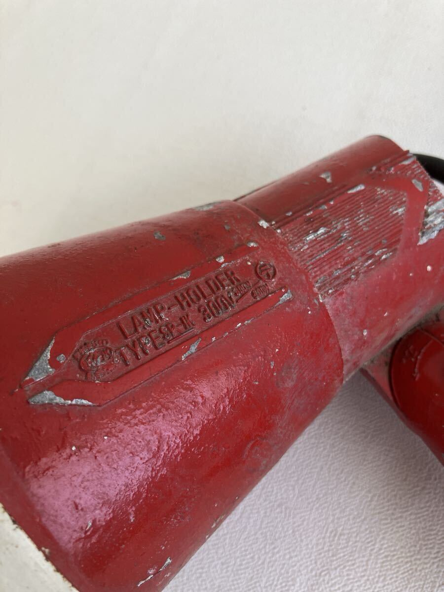 赤と白のカラーリング、経年による錆がヴィンテージ感漂う屋外型投光器の出品です。