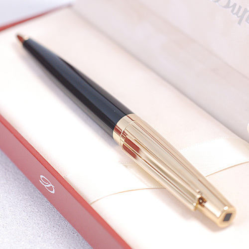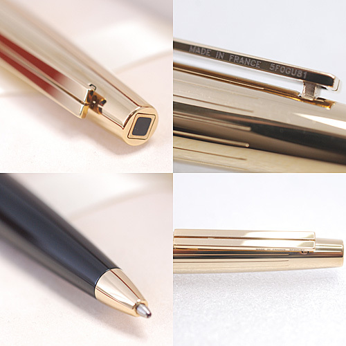 ユニークなメタル・クリップによって強調される張りのあるラインが力強いエリプシスは、現代的なスタイルを主張しながらも、エス・テー・デュポンの完璧な品質の伝統を守りつづけています。 ジュエリー・モデル、または軽さを追求した樹脂モデルがあります。 (使用説明書より) ボールペンとシャープペンシルの、共用構造となっており、現在はボールペン仕様。 カートリッジを入れ替える事により、シャープペンシル、またはボールペンとしてお使い頂けます。 必要に応じてお好きなカートリッジをお選び下さい。 クリップ側面には、MADE IN FRANCE と、シリアルの刻印あり。 |