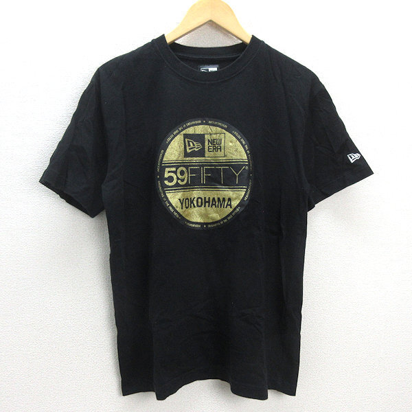 G■ニューエラ/NEWERA プリントTシャツ/コットン【L】黒/men's/21【中古】■