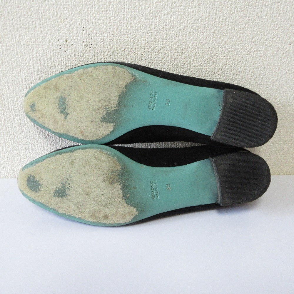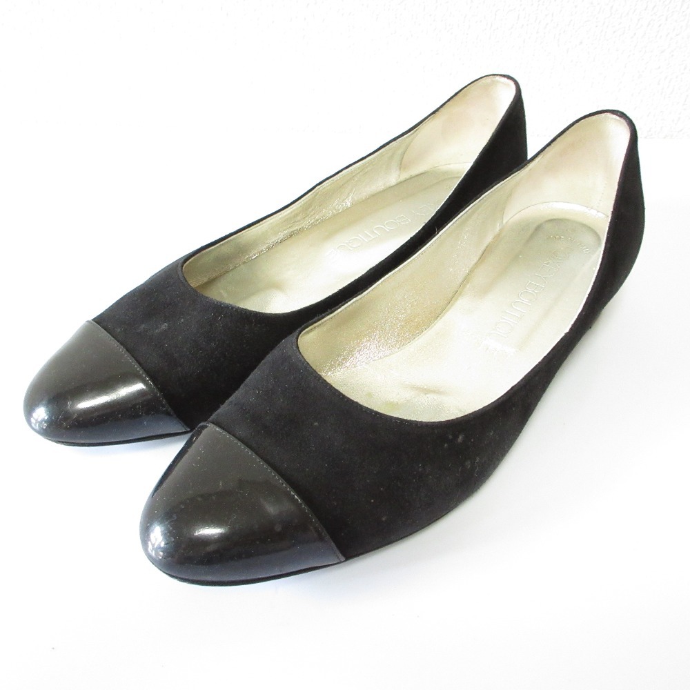 良品 FOXEY BOUTIQUE フォクシーブティック スエード キャップトゥ ローヒール パンプス サイズ38 24cm ブラック